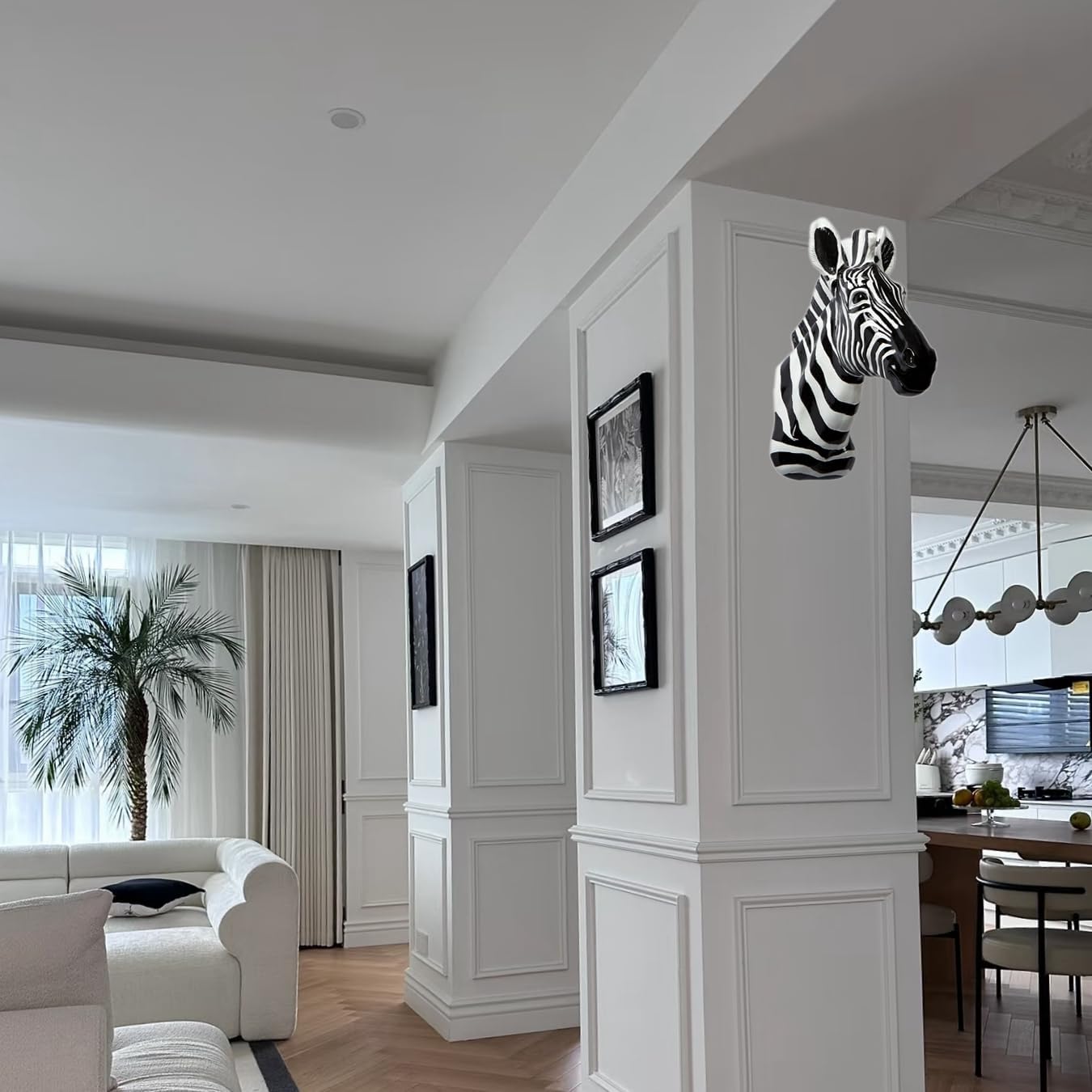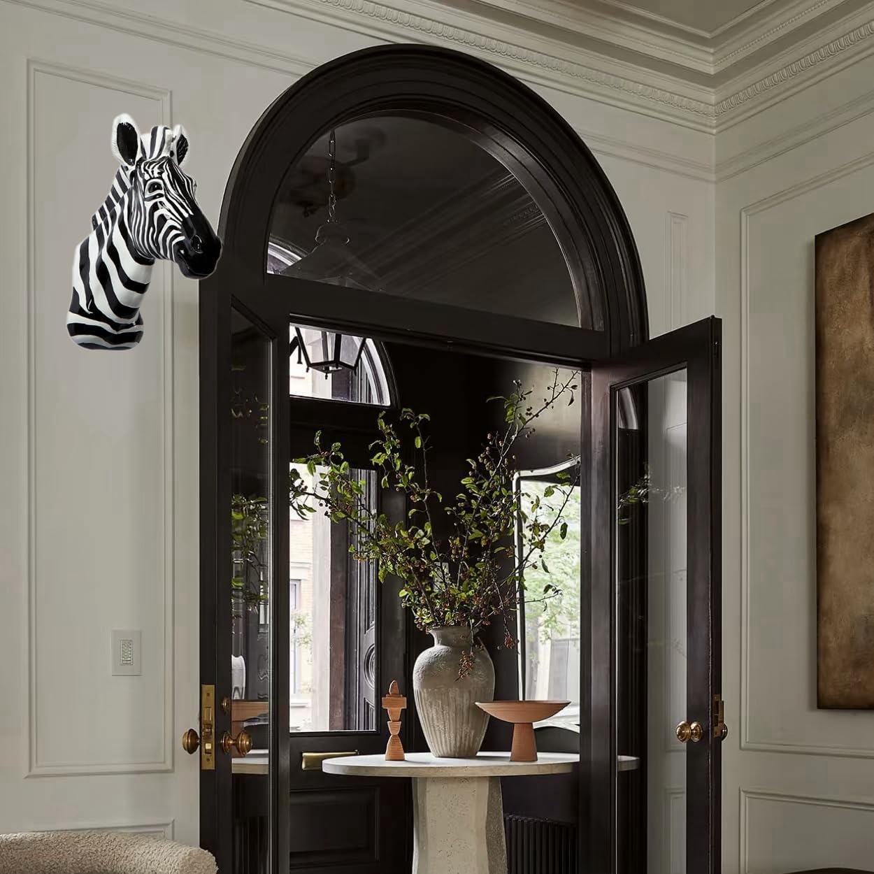 Yun&Lin Crafts Resin Zebra Head mounts are cast in fine polyresin and painted in matte paint finish with realistic look.removable antlers. This Zebra Head's dimension is 43.5*36.5*17.5cm(17*15*7"), Net Weighs about 3kg. Y&L Zebra mounts come with a keyhole for easy wall mounting.