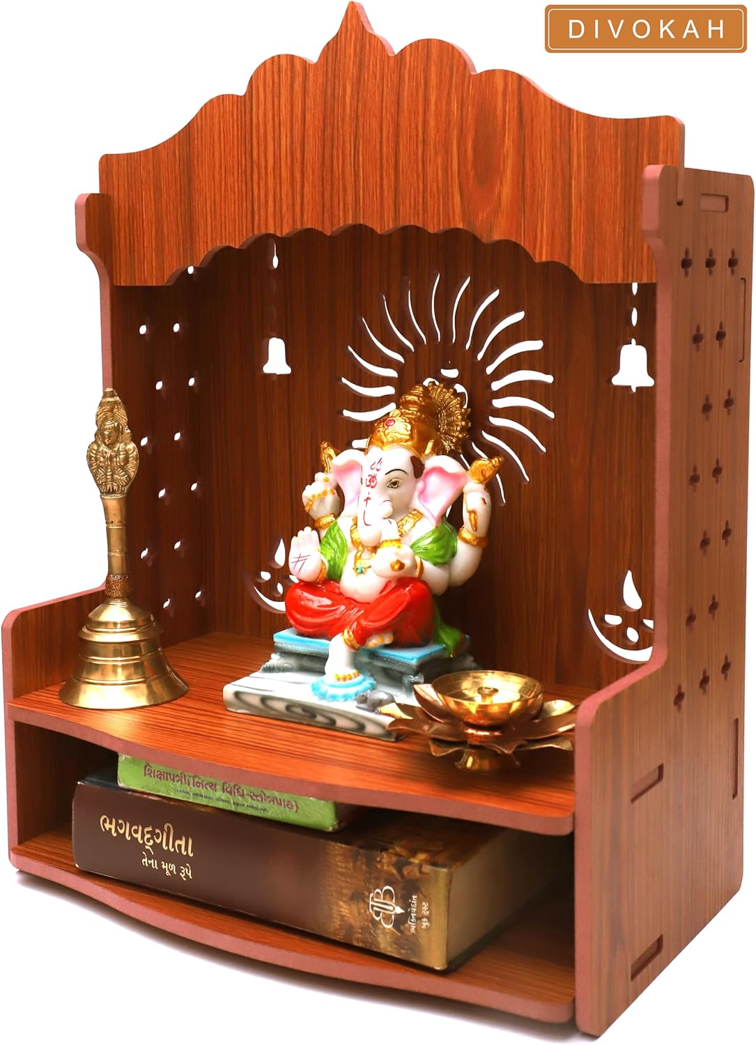 DIVOKAH Is A Well Known Brand For Premium Quality. Its time To Design Your Wall With Creativity. This Exclusively Designed Temple Give A Rich Look To Your Home. It Brings A Warm Feeling Of Peace And Spirituality. The Temple Can Be Used For Festivals Gifting Purpose, Any Inauguration, Birthday, Anniversary etc. We all love to keep our idols in the best-of-class pooja temples in our house. It shows our passionate devotion to our Gods and Goddesses. Pooja-temple is the most sanctified place in our house. It has a wall-mounted design that makes it easy to hang in your pooja room. It provides ample space for keeping beautiful figurines of your Gods and Goddesses. It is best suitable for those devotees who have limited space available for their pooja-temple.