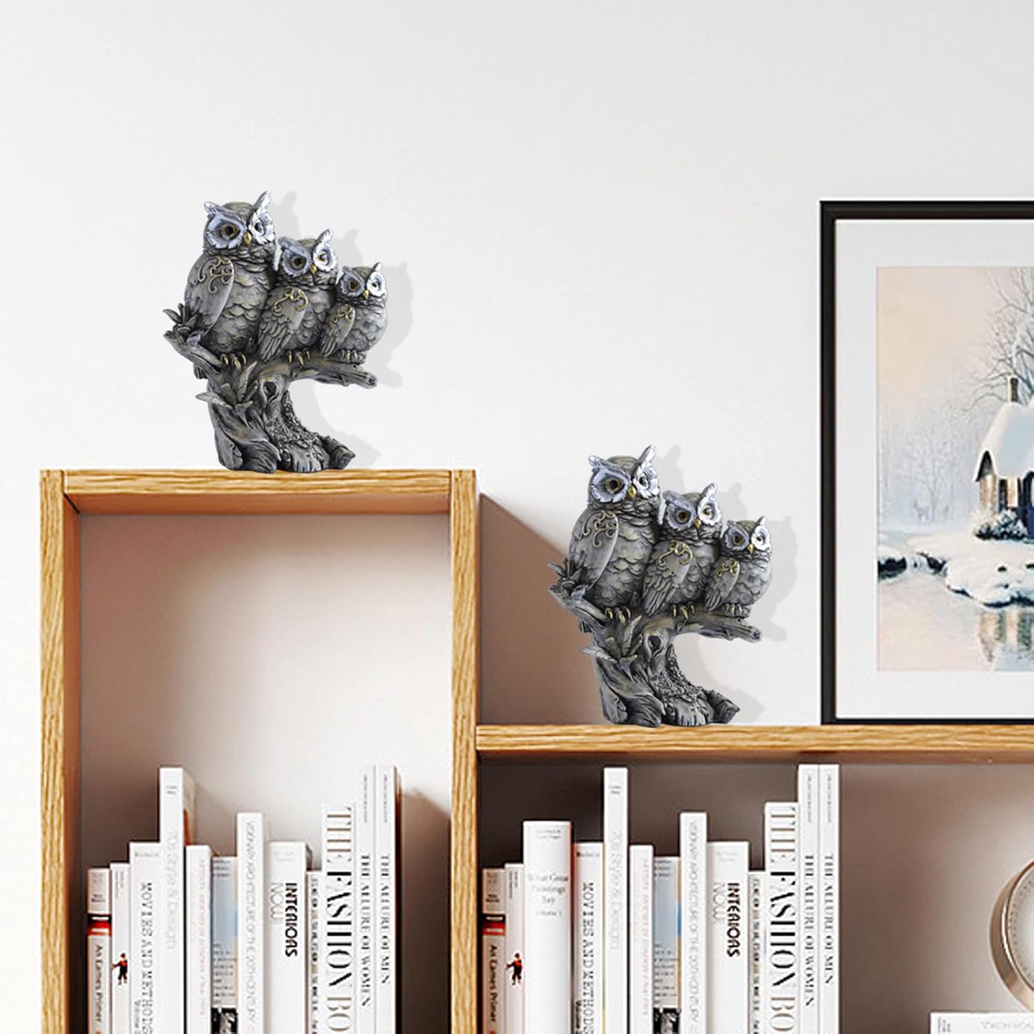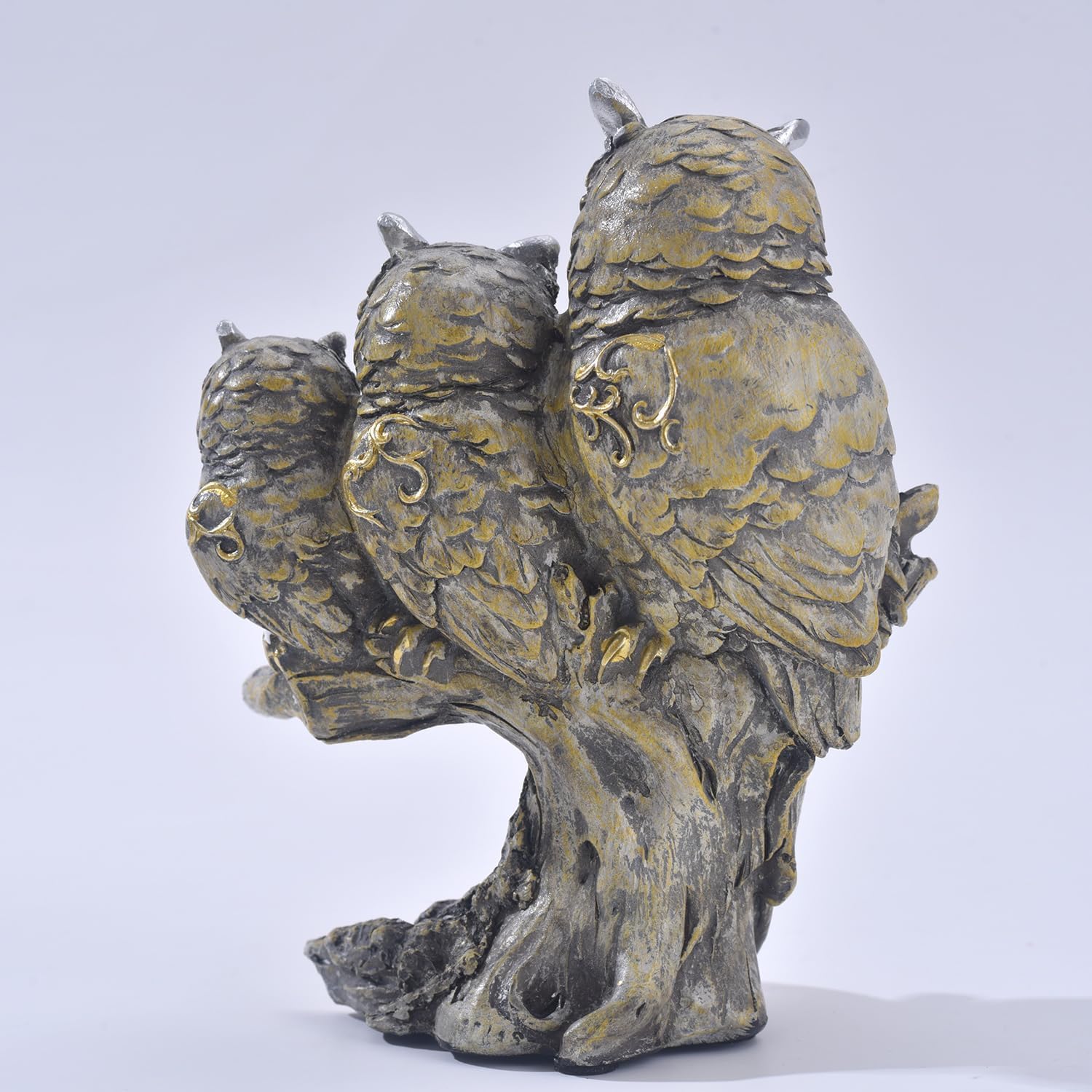 Transform your living space into a serene sanctuary with our exquisitely crafted Owl Family Sculpture. This stunning piece captures the heart of the forest, bringing a touch of wilderness and whimsical charm to any environment. Meticulously designed for those who appreciate both art and nature, this figurine is more than just a decoration—it's a statement. Key Features: Lifelike & Realistic Design: Witness nature's beauty up close. Our sculpture intricately details a family of three owls, featuring lifelike textures, feather-like etching, and expressive features that create an authentic woodland vibe. Each glance reveals the careful craftsmanship that makes this piece a true work of art. Elegant Vintage Aesthetic: Inspired by timeless classics, this statue boasts a vintage-inspired design that adds a touch of old-world elegance and character to your home. Its enduring charm makes it a perfect fit for both modern and traditional decors, effortlessly elevating the style of any shelf, desk, or cozy corner. Unmatched Versatility: Designed for flexibility, this sculpture seamlessly transitions between your indoor and outdoor spaces. Create a magical focal point in your living room, add a touch of personality to your office desk, or enhance the tranquility of your garden patio. Its ability to blend in anywhere makes it the ultimate decorative accent. The Perfect Decorative Accent: Whether you're a dedicated owl collector, a nature enthusiast, or simply looking for a unique decor piece, this statue delivers. It serves as a captivating and distinctive accent that instantly draws the eye and infuses your interior or garden with personality and charm. A Captivating Statement Piece: Crafted to captivate, this eye-catching sculpture is destined to become a conversation starter. It’s more than just an ornament; it's a stunning statement piece that delights the senses and enhances the ambiance of any room or outdoor setting, making it an ideal gift for anyone who loves distinctive and beautiful decor. Bring home a piece of the wild and let the charming owl family add a story to your space.