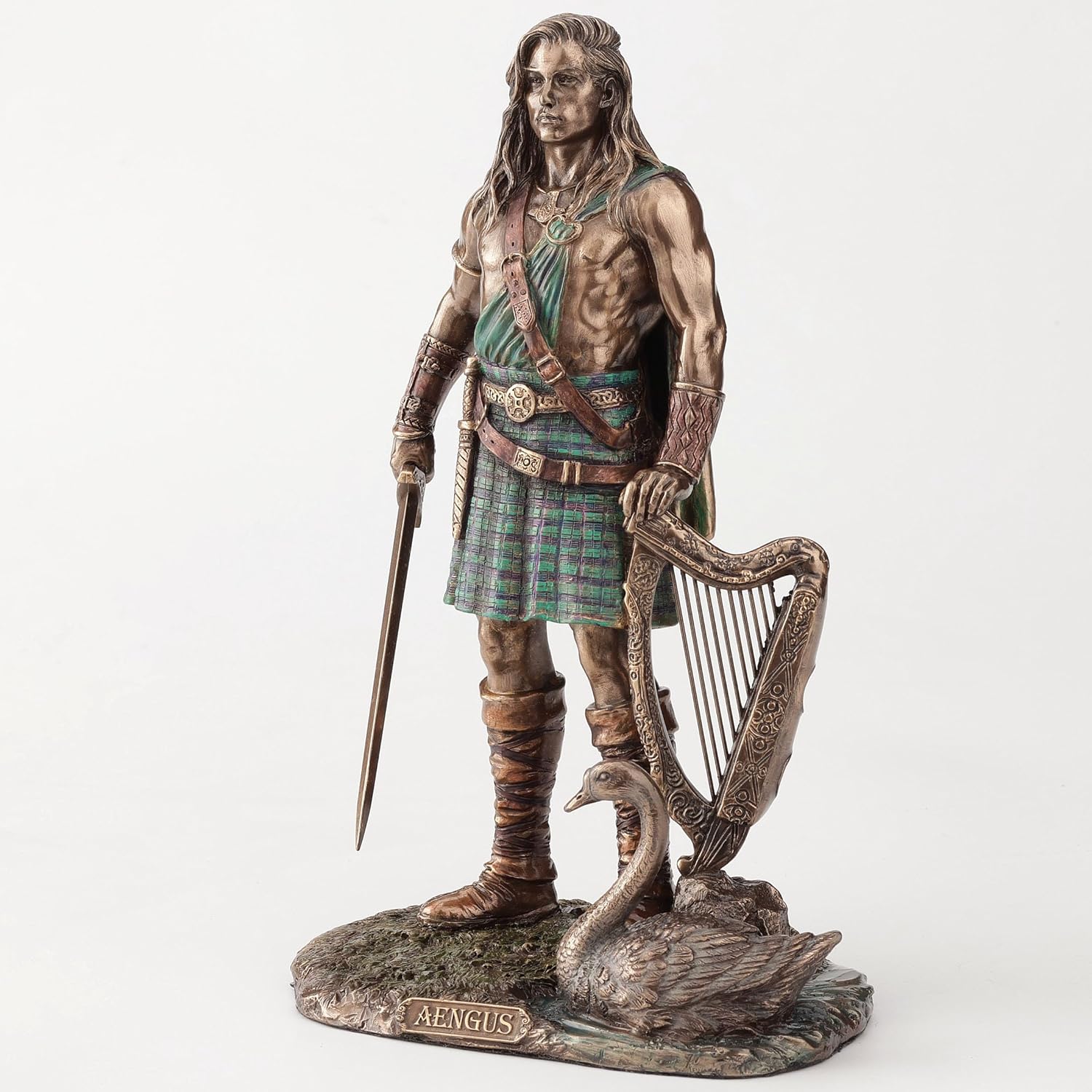 Aengus, often celebrated as the Irish god of youth and love, embodies the vibrancy and allure of Celtic mythology. Known as the son of the Dagda and the river goddess Boann, Aengus is famed for his enchanting beauty and melodious voice, which could captivate all who heard it. He plays a central role in many mythological tales, including his pursuit of Caer Ibormeith, the swan maiden, underscoring themes of love, transformation, and dreams. Aengus is frequently associated with music and poetry, and is depicted in art holding a harp, symbolizing his connection to artistic inspiration. He remains a potent figure representing eternal youth and the power of love, resonating through the ages with timeless appeal.