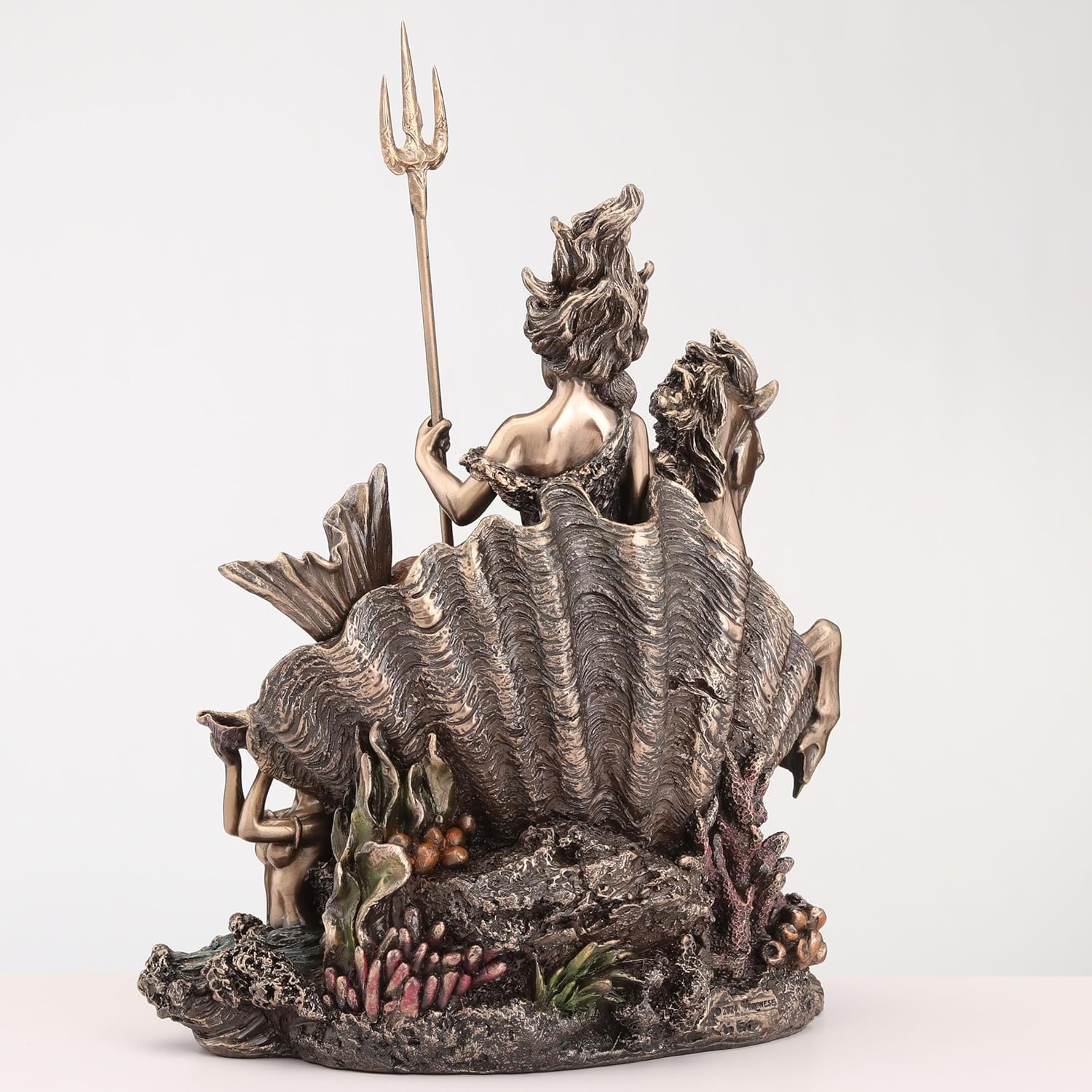 Amphitrite is a prominent figure in Greek mythology, known as a sea goddess and the wife of Poseidon, the god of the sea. As a Nereid, one of the fifty daughters of Nereus and Doris, she embodies the serene and nurturing aspects of the ocean. Often depicted as a beautiful mermaid or adorned with maritime symbols, Amphitrite plays a crucial role in calming the seas and aiding sailors. Although not as widely referenced as her husband, she maintains a vital presence in mythological tales and ancient art, symbolizing the bountiful and tranquil nature of the marine realm.