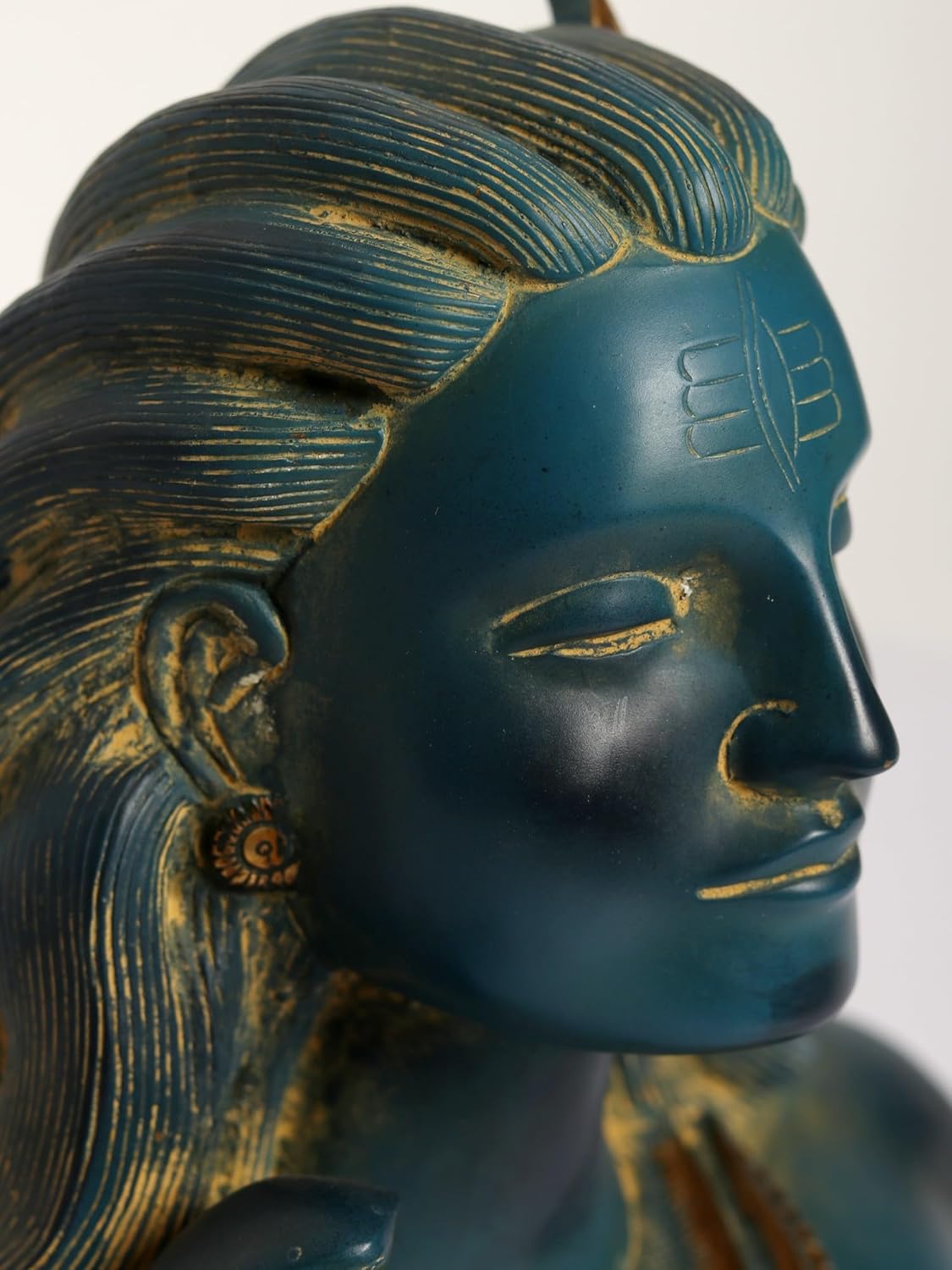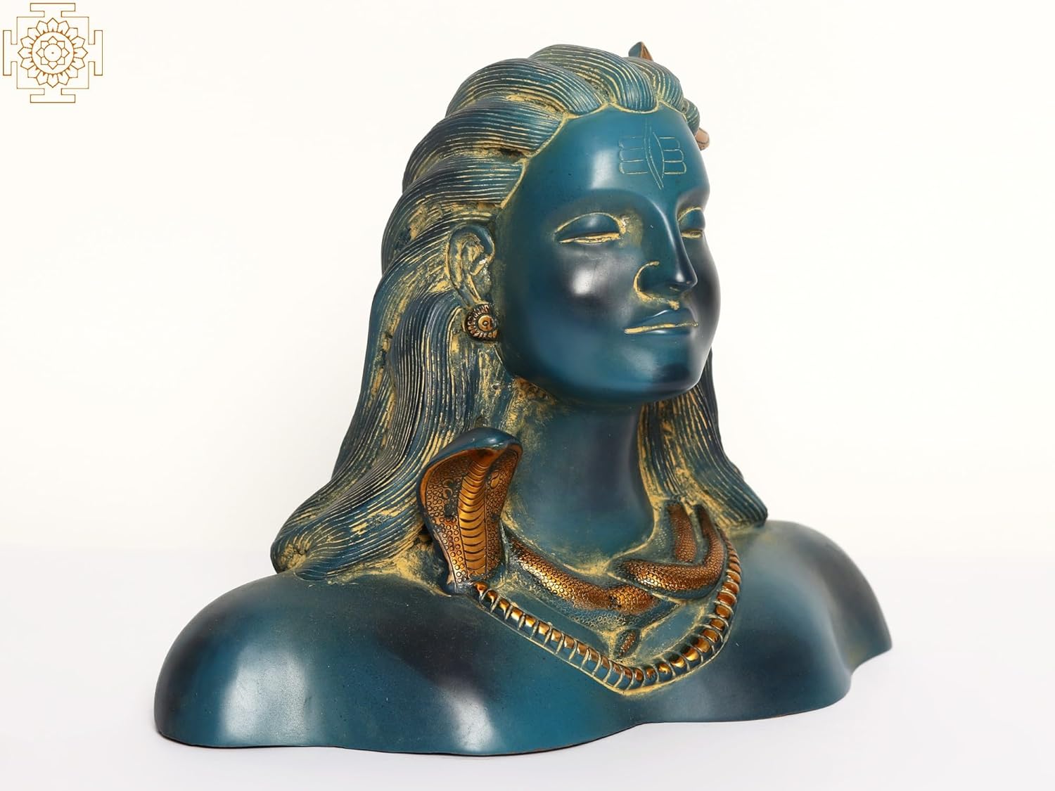 Exotic India Art Pvt. Ltd. The Adiyogi Shiva Bust Brass Statue is a majestic representation of Adiyogi – the first yogi and the original source of yogic wisdom. Adiyogi Shiva symbolizes infinite consciousness, inner stillness, and the ultimate union of mind, body, and soul. This powerful bust form captures Lord Shiva’s calm yet commanding presence, making it a profound symbol of meditation, self-realization, and spiritual awakening. Finished in a rich antique brass patina, the statue radiates a timeless and sacred aura. Its solid and well-balanced base ensures stable placement, making it perfect for meditation rooms, yoga studios, home mandirs, living spaces, offices, or spiritual centers. The presence of Adiyogi is believed to create an atmosphere of peace, focus, and heightened spiritual energy. Adiyogi represents the science of self-transformation, guiding seekers toward balance, clarity, and liberation. Placing this statue in your space serves as a constant reminder of discipline, inner strength, and conscious living, supporting meditation and mindfulness practices.