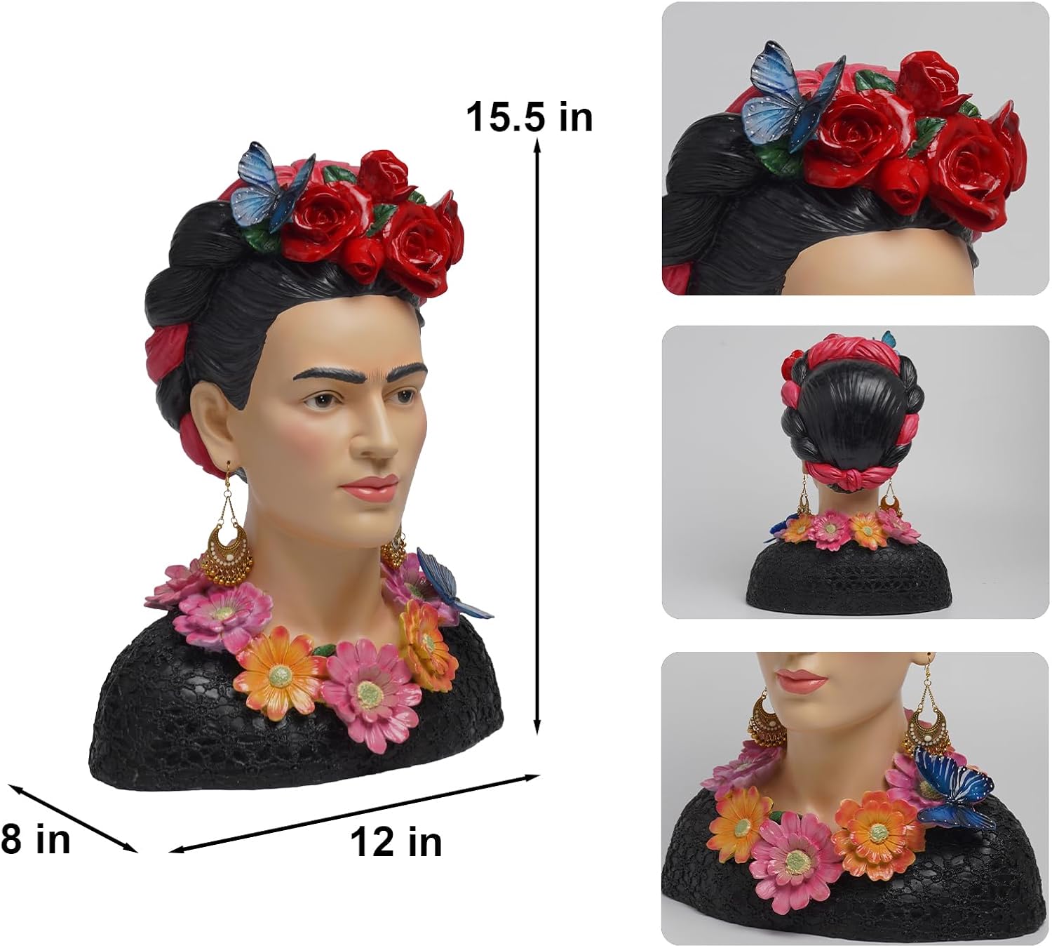 DiliComing Garden-Statues Women-Head Statues for Home Decor -Frida Sculpture Bust Statue Resin Mexican