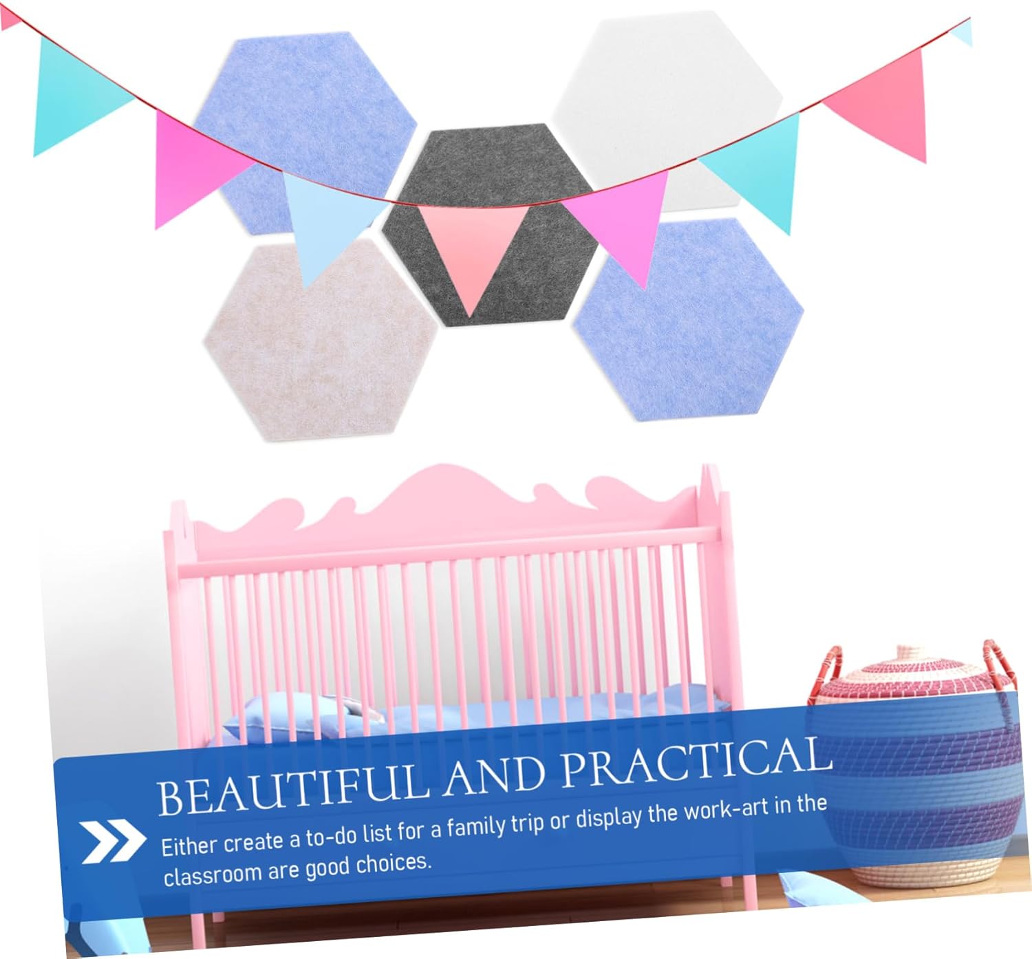 Package Include x Felt Bulletin Boards Characteristics -Material:Felt hexagon bulletin board memo -Size:20.00X17.50X1.00cm/7.86X6.88X0.39in felt boards -Color:Assorted Color felt bulletin board tile - It's easy to install hexagon felt pin board, no drill, just peel off the protection paper wall memo board stickers. - Made of and anti-wear felt material, not easy to break, support long time of use hexagon wall decor. - It can not only store memos, paper, information, notes, etc., but also can add beautiful styles to your office or home bulletin board wall sticker. - Self adhesive design, and these felt board stickers are easy and convenient to use, save your time and efforts felt tiles for notes. - Can be widely applied in office, classroom, home. A wonderful ornament for your space memo board tiles.Goods Descriptionfelt wall pin boards These are hexagon felt bulletin board stickers, which have wide applications, suitable for various DIY creations, fit to display the photos, pictures, notes, memos, crafts, paintings and other funny things which will become your personal arts shows, easily meet your different needs