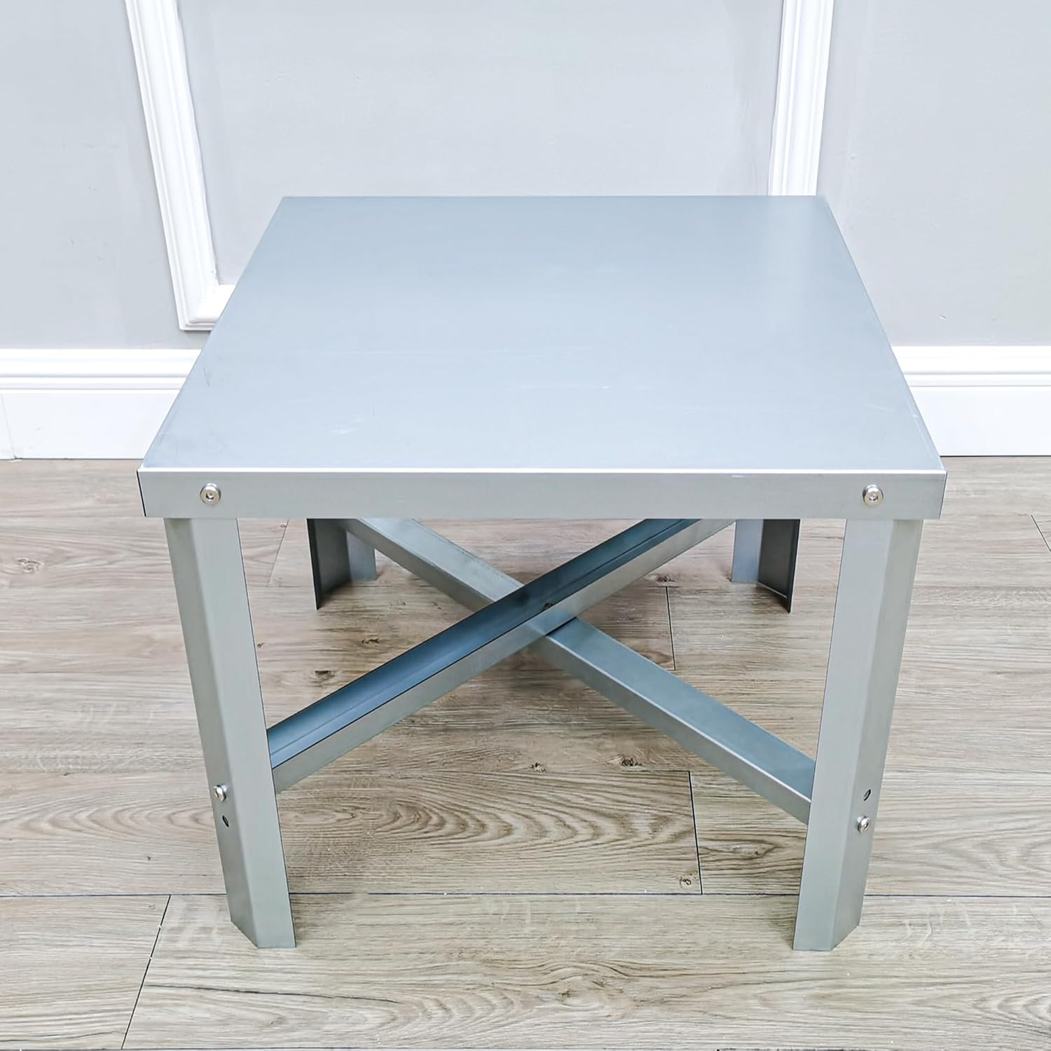 The Gas Water Heater Stand & Metal Riser is a sturdy platform crafted from galvanized steel. It is specifically designed to elevate gas-powered water heaters, ensuring proper ventilation, protection against water damage, and convenient access for maintenance. Not limited to water heaters, this versatile stand can also be utilized to elevate refrigerators. By providing adequate airflow, it safeguards against moisture, simplifies cleaning, and reduces strain on the back when accessing appliances. The shipping box dimensions are 22.2 inches wide, 22.2 inches deep, and 1.77 inches tall, with a weight of 15.5 pounds, ensuring safe and manageable delivery. With an overall size of 21 inches in width, 21 inches in depth, and 18 inches in height, this stand offers substantial support for various appliances. Constructed from 18GA (1.2mm) galvanized steel, assembly is straightforward using screws, ensuring stability and durability for long-term use.