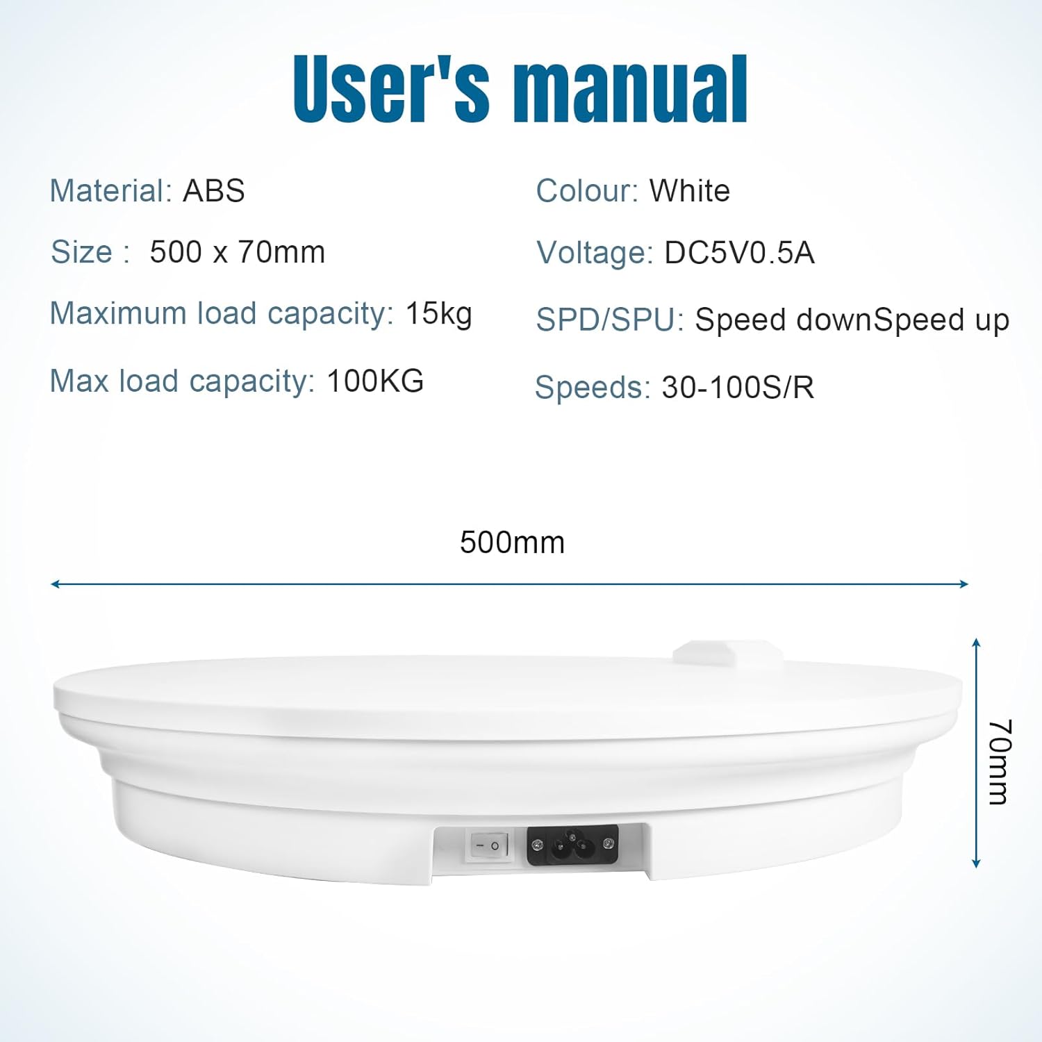 | Material Type | White 20", w/ AC Power Outlet |
