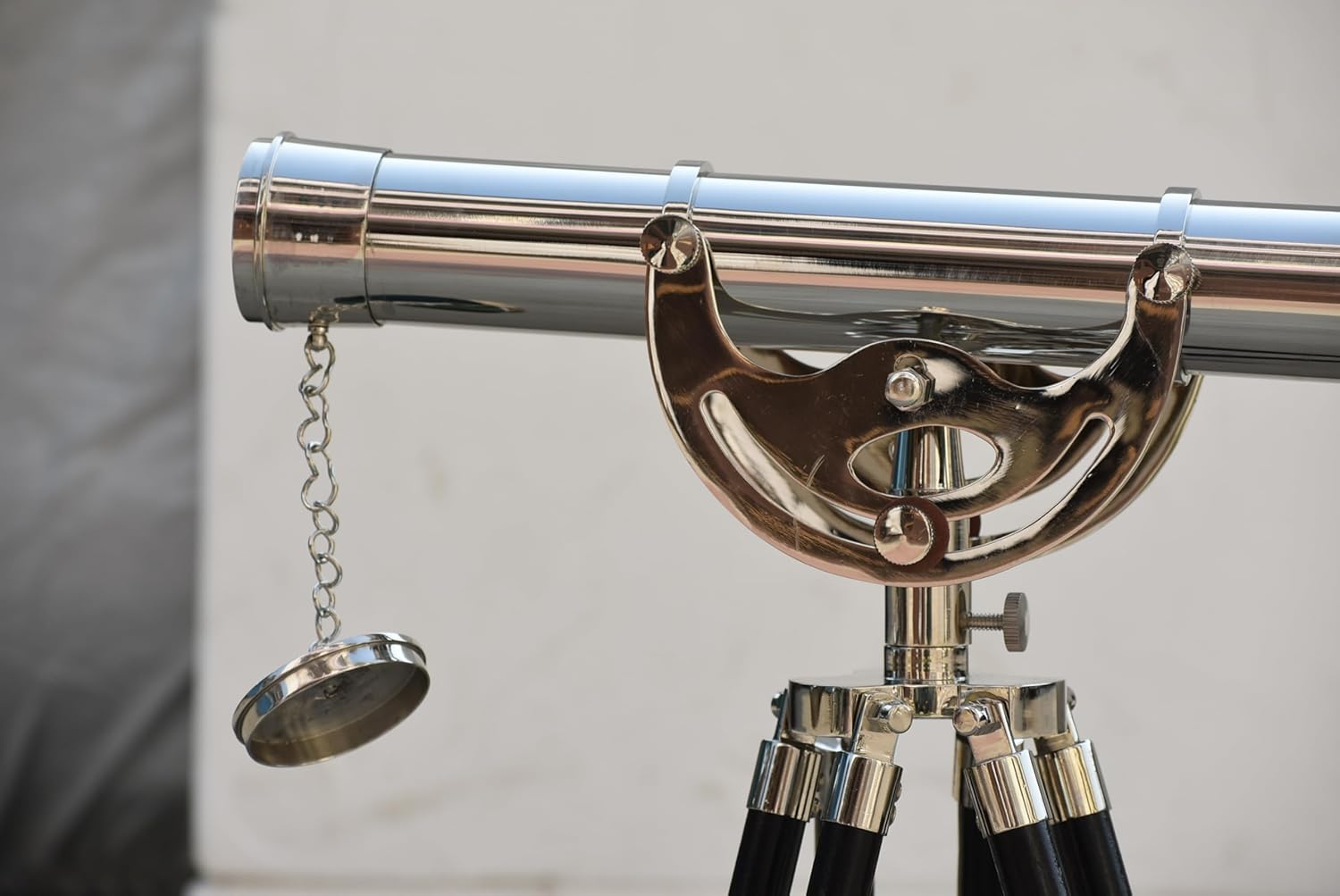 Inspire a love for adventure and discovery with the Brass Nickel Telescope 16" with Adjustable Wooden Tripod. This beautifully handcrafted nautical spyglass brings a classic maritime look to any space. Made from premium brass and nickel, the telescope is both functional and decorative, offering exceptional quality for collectors, explorers, or anyone with a passion for vintage nautical items. With its 16-inch size, the telescope is perfectly sized for display or use, whether it's used for stargazing, home décor, or as a unique gift for your son. The adjustable wooden tripod provides stability and can be customized to different heights and angles, making it easy to enjoy. Whether you're gifting it to inspire curiosity in your child or adding a nautical touch to your home, this telescope is a timeless treasure.