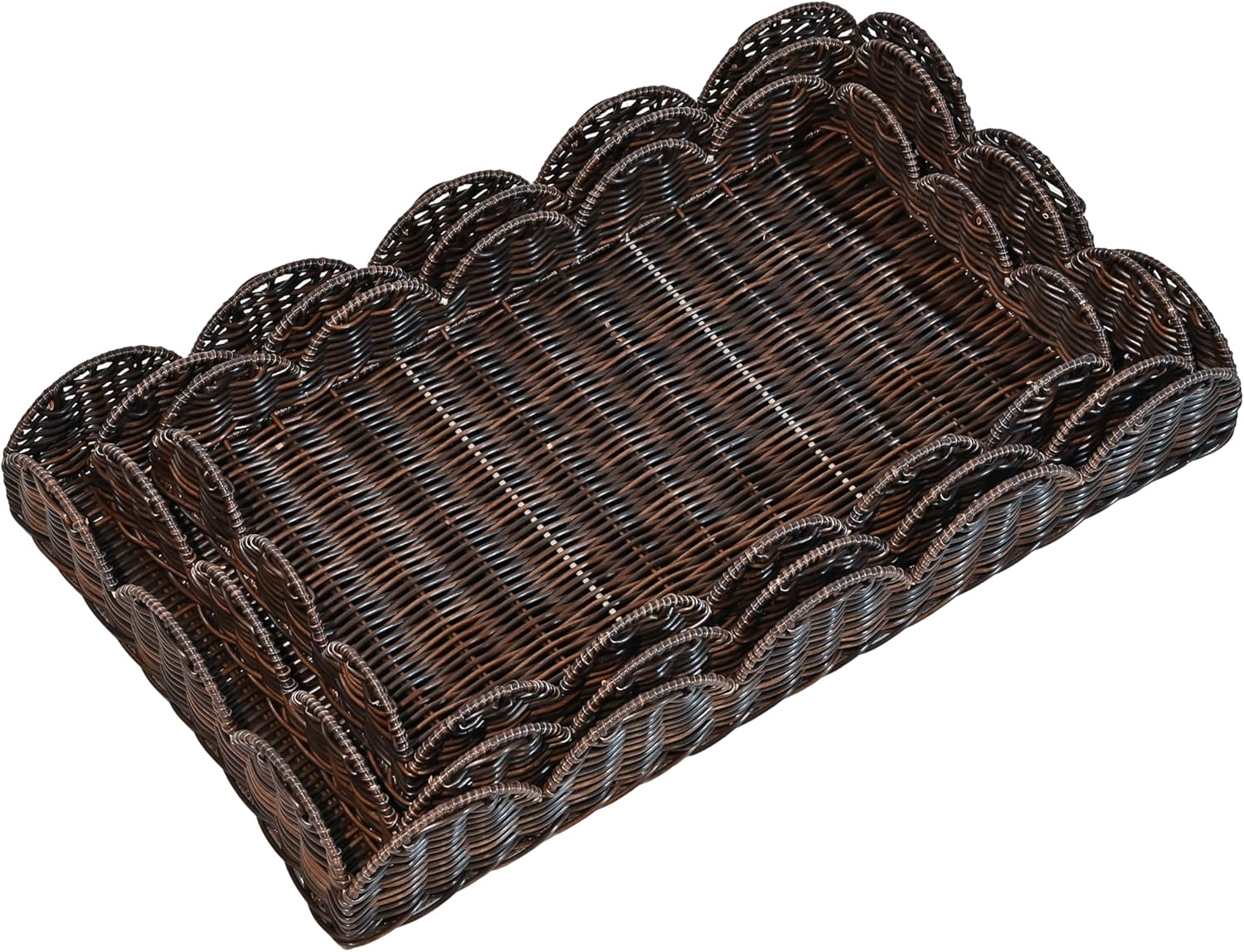 Our scalloped, decorative serving trays will organize your office, bathroom or kitchen with charming cottage style. They have a metal frame and preppy scalloped edges. Use them to keep kitchen items handy, serve snacks or tidy up the vanity.