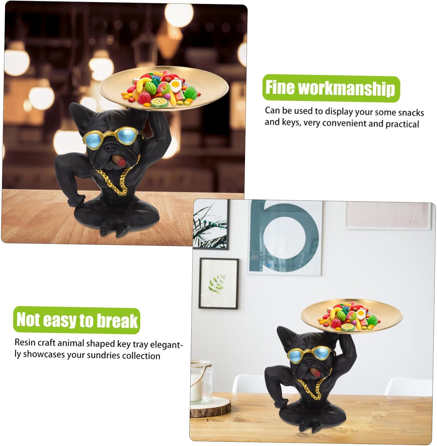 Package List 1 x animal shaped porch sundries storage holder Characteristics -Product Info:Dog Fighting Rack -Size Dog: About 19.00X15.00X17.00cm/7.47X5.89X6.68inch Animal Model Tray -Size : About 17.50X12.00X17.00cm/6.88X4.72X6.68inch tray decor -Size Tiger: About 19.00X17.00X15.00cm/7.47X6.68X5.89inch decorative plate -Material: Stainless steel+resin fruit tray decoration -Size Orangutan: About 22.00X12.00X17.00cm/8.65X4.72X6.68inch decorative dessert trays -A nice choice to home, office, porch, desk, table decoration ornaments accessories table tray decorative. -The color is beautiful, the shape is creative, which brings the artistic style of the desktop cake tray decoration. -Perfect and well workmanship, the figurine is safe and suitable for home decoration Decorative Candy Plate. -Fine material with beautiful animal shaped statue, good-looking and home decorative accessories -This item is a delicate decor on your desk in the home porch to place key Animal Statue Artware.Goods InformationAnimal Statue Artware Make it an gift for your family and friends.home decorative accessories This item is a delicate decor on your desk in the home porch to place key.table tray decorative Also, it can be used to store small items, such keys, earrings, etc.fruit tray decoration And its lovely little animal statue design which makes your desk looks so beautiful and adds a great landscape for your home