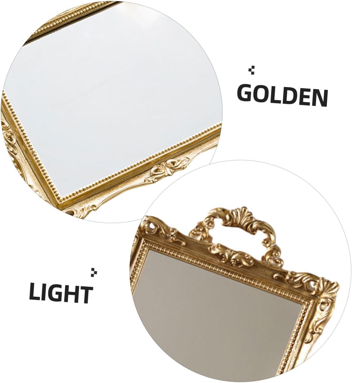 Package Include 1 Characteristics - Color: golden. - Material: resin and glass mirror. -Product Info:Mirror tray - Size: About 36.80X23.00X5.00cm/14.49X9.06X1.97inch. - Creative and very , which can be used for a long term mirror plate. - Fine craftsmanship and good texture, not easy to wear and tear, very practical in use mirror vanity tray. - Delicate and generous modeling, it also can be used as a nice ornament ornate gold mirror tray. - It can be used for living room, hotel, dorm, party for storage use dressing table tray vintage. - Can be sent to your close friends or families as a present mirror tray vintage.Goods Descriptionmirror tray vintage Special mirror tray design, perfect as a display tray or storage tray for many occasions use.mirror vanity tray It is made of resin and glass material, .decorative mirror tray This item is a Nordic style retro carved storage mirror tray.mirror table tray Suitable for home, living room, bedroom and so on