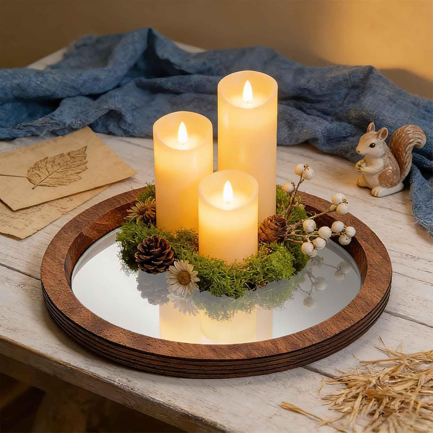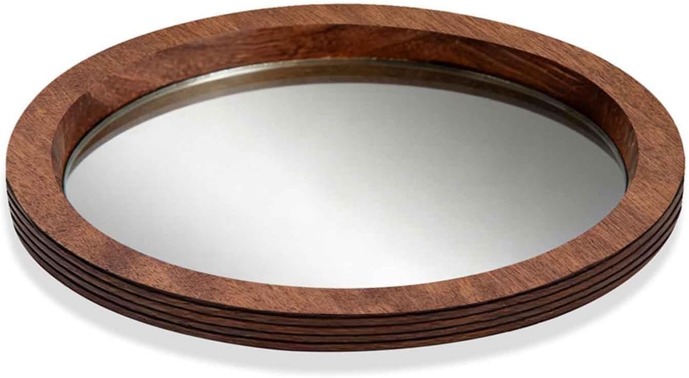 QUALITY MATERIALOur glass mirror vanity tray with wooden frame , this wooden glass mirror vanity tray brings elegant feel to your home.MIRROR MIRRORED BAR TRAYThe hand-crafted distressed finish is truly artistic accent decor pieces, rustic style crafted to accentuate your home decor. Hold the TV remotes/ video game controllers/magazines/plants etc. to create a unique Tray.DISTRESSED FOR MULTI-DESIGN &PURPOSESuitable for rustic table centerpieces and uses on the entryway table, vanity, mantle. Our round tray is multipurpose and used as a TV tray, couch tray, sofa tray, or coffee tray in any living room.MULTIPURPOSE Jewelry Vanity/Tray organizer - Clear glass mirrro makeup tray organize your beloved Jewelry, Trinkets, Rings, Earrings, Makeup, Skin Care, Towers, Perfume or Cosmetic Tools etc.Specification:Material: Wooden, GlassSize :28cm/11inPackage Includes:1 x Wooden Glass Mirror Tray (Accessories are not included)Note:Please allow slightly errors due to manual measurement and different monitors.