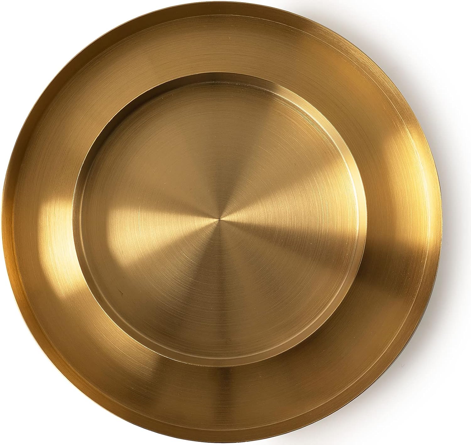 Stylish, sleek and practical: This set of trays will serve all your serving and organizing needs.Set of 2 round trays that are made from stainless steel with a soft brass finish. Both fashionable and functional, these trays have many uses and look good in any setting.Small tray has a 7.8" diameter and 1" height. Large tray has a 11.8" diameter with 1" height. The smaller tray nests into the larger one, reducing the amount of space needed for storage.Can be used as serving trays, organizers and decorative statement pieces. Suitable for both indoor and outdoor use.Trays have been slightly buffed and are easy to clean: We recommend using a damp cloth to wipe the trays clean. Can also be hand washed.Color: GoldSize: Small: 7.8" diameter; Large: 11.8" diameter