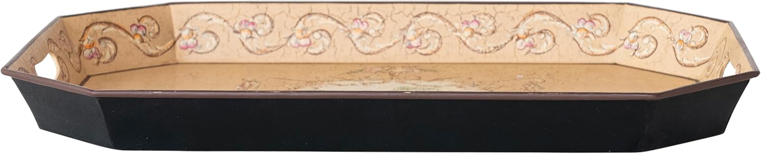Add the Decorative Hand-Painted Metal Tray with Farm Landscape, Chickens, Botanicals and Handles to interiors that embrace pastoral beauty and handcrafted artistry. This charming tray showcases a hand-painted farm scene with lively chickens and lush botanicals, all rendered in rich multicolor tones. Built-in side handles add convenience and style, making it perfect for serving, display, or wall décor. Ideal for Contemporary, Traditional, Transitional, Farmhouse, and French Country settings, it brings warmth and storytelling to any room. Made of sturdy metal, it offers lasting durability and visual appeal. Measuring 20.75 inches long and 14.5 inches wide, this tray is a delightful blend of function and decorative flair.