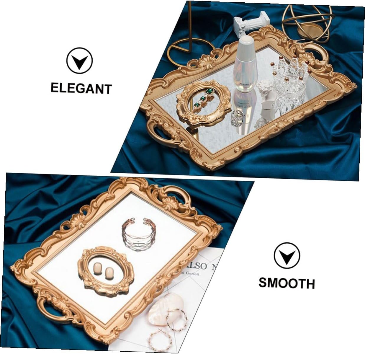 Package Include 1 Characteristics -Product Info:Mirror tray props - Material: plastic Retro Storage Plate. - Size: 39.00X24.00X2.00cm/15.33X9.43X0.79in Retro Makeup Tray - Color: Storage Plate. - Whether as a photo props or home furnishings are very appropriate Household Storage Tray. - material, safe and also decorative for you to use Storage Plate. - The retro European decorative storage tray, very textured Photo Props. - Suitable for many kinds of scenes, such as coffee shop, kitchen, living room table, birthday party, etc Cosmetic Storage Tray. - Fine workmanship, polished smooth, elegant practical Makeup Tray.Goods DescriptionCosmetic Storage Tray It is widely used for dining table, kitchen, bathroom and other places.European Mirror Plate Very fashionable and chic.Mirror Plate With the design of European retro mirror.Photo Props Are you looking for a decorative and practical storage tray? Our product can meet all your needs