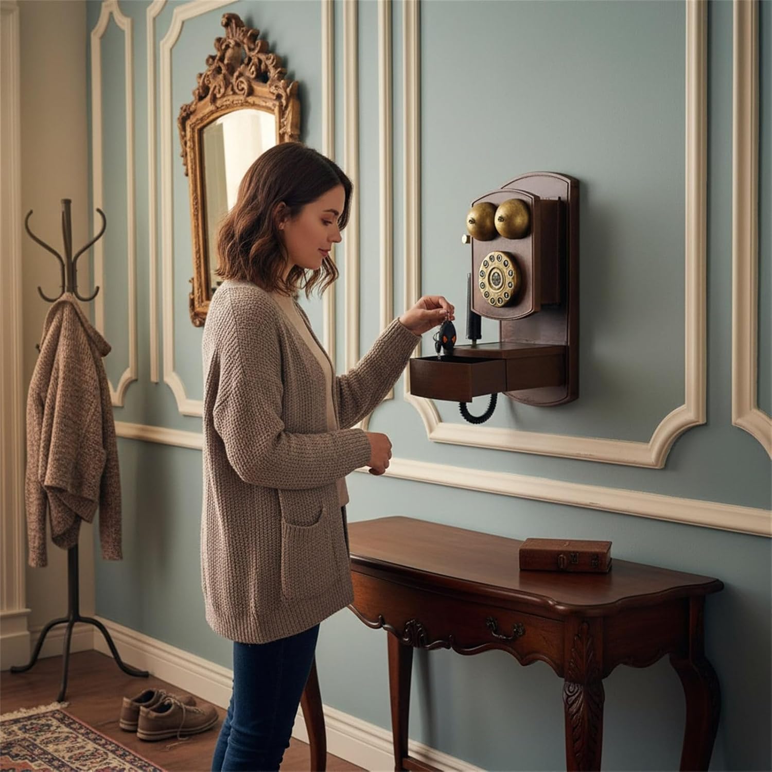 Antique Telephone Rotary Dials Landline Phone Model Retro Wall Mounted Ornament Window Booth Home Decorations Features: ANTIQUE styles Rotary dials design model is adopted, making the nostalgic retro telephone is elegant and solemn, add a vintage flavor to your home, coffee shop decoration, let you see the romantics nostalgic and century old styles materials Telephone Decors make from materials Iron, long lastings and full of durability, with a wonderful glossy finish, making it meet the needs of retro homes or places It is not a real landline, but a landline decoration Our telephones model are carefully crafted based on historical models with art decors detail Every detail that has been meticulously crafted becomes of the most important parts and its most beautiful achievements Multifunction retro old fashioned telephone ornaments with storage box perfect wall decoration for bedroom living room room; families, offices, luxury homes, star hotels, galleries, jewellery firms, window displsy ornament decorations, of movie props or stage shows Wonderful gift, sweet warm friend family and yourself Specifications: Materials: iron Package Includes: 1Piece Antique Landline Telephone with Storage Box ( Only Model Not Real Telephone) Note: Please allow 1-2cm errors due to manual measurement Due to the differences betweeen different monitors, the picture may not reflect the actual colour of the item