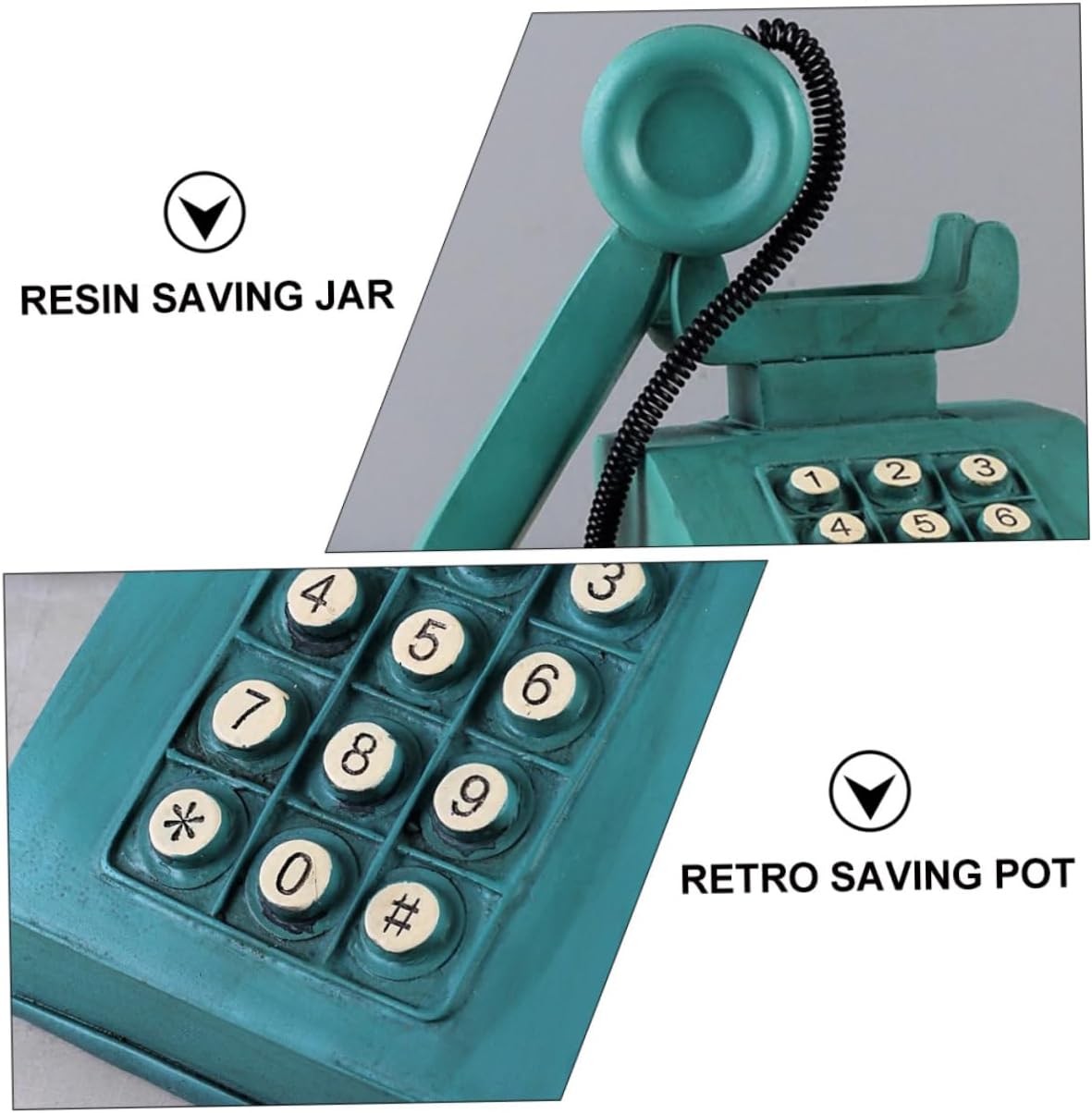 Package List 2 x Saving Pot Features - resin material: it is made by premium resin, safe and odorless to use vintage home decor. - Color: Green piggybank. - Material: Resin retro telephone. - Perfect present: it is a as a birthday present to friends, they will be glad to receive it vintage phone. - Good desktop decoration: fine workmanship, it also a craft, suitable for your home and room vintage rotary phone. - Size: About 24.00X16.00X15.00cm/9.43X6.29X5.89inch vintage telephone. - Simple style design, chic and fashionable. Compact and light weight, convenient to carry vintage telephone decor. - Retro and vivid telephone appearance design, special and unique for long term use old telephone vintage.Goods Informationretro telephone This retro and decorative resin saving pot is the perfect household decoration.vintage telephone It can successfully encourage you and your to save with this saving pot! Also is a great decoration for bedroom, living room and so on.vintage telephone decor This vintage resin coin bank sits perfectly on any table or bookshelf
