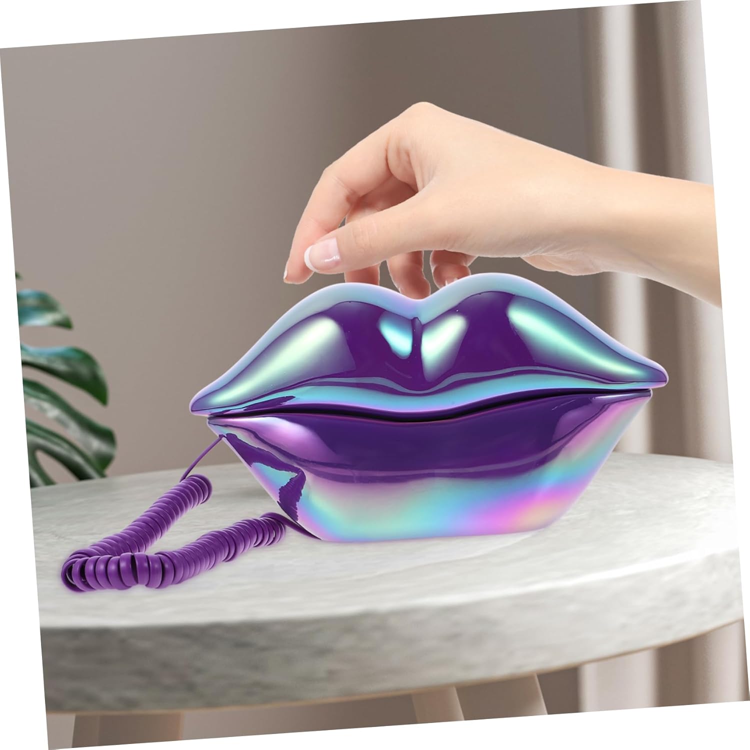 Package Include 1 x Lip Shaped Landline Phone Features -Material:ABS, Electronic Components phone -Color:Purple old phones -Size:22.50X11.50X6.00cm/8.84X4.52X2.36in house landline phones -Small size and lightweight, convenient to use, bringing better using experience mouth phone. -Fun lip shape makes it look unique, very attractive style, unique phone, show your unique taste charming lip phone. - workmanship and materials ensure a and details pear phone. -As a land line phone, it has a very powerful function, sound , clear calls lip phone. -Great holiday celebrations, birthdays and Valentine's Day for your pink flip phone.Goods Informationcharming lip phone It can also be used as props in movies or stage shows, very practical.vintage phones for landline This novelty is made from electronic components and ABS materials and workmanship.novelty You can make phone with the unique lips craft and you will enjoy it. operation, beautiful and practical, ideal your families and friends