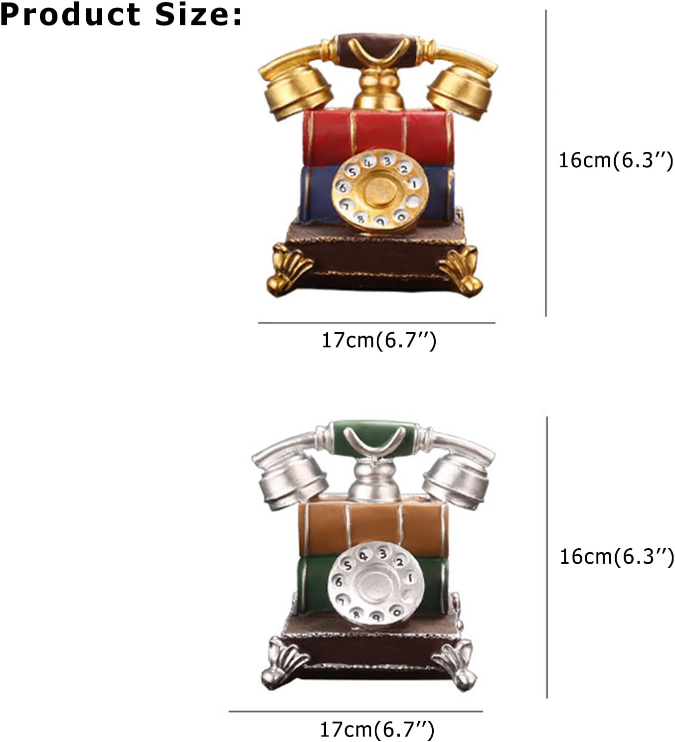 METICULOUSLY CRAFTED: This is a very beautiful Landline Telephone which could be used for both office and home decor;. It will be a nice piece of ornament and a practical Landline Telephone in your home or anywhere else. SPECIFICATIONS: - Product Name: Decorate Telephone - Material: Resin - Size: 17X16CM - Color: Red,Green - Use Range: Gifts, living room, bedroom bedside, study, hotel, home store, etc. PACKAGE CONTENT: - 1 x Decorate Telephone(Decorations, NOT real phones) ATTENTION: - Due to the different monitor and light effect, the actual color of the item might be slightly different from the color showed on the pictures. Thank you! - Please allow 1-3cm measuring deviation due to manual measurement.