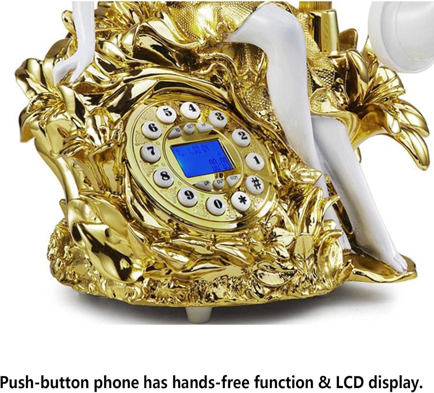 Vintage Landline Corded Phone European Style Desk Phone Classic Old Push Button Telephone with Hands-Free for Home Office Hotel Bar Decoration Gold,Silver