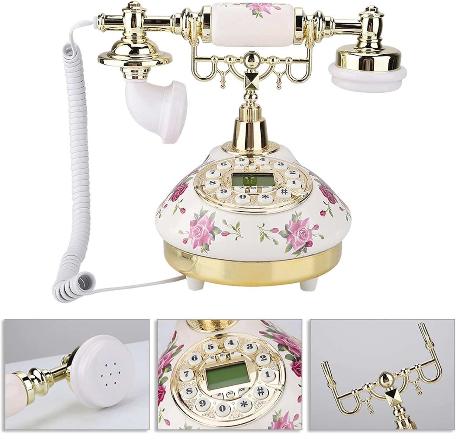1. [DISTINCTIVE DESIGN] Vintage retro imitation antique telephone adds a unique charm to any space. 2. [USER-FRIENDLY] Easy-to-assemble removable bracket adds a touch of elegance to the phone. 3. [EFFICIENT CALL MANAGEMENT] 38 sets of Caller ID numbers for quick checking and call back. 4. [PREMIUM QUALITY] Made of durable ceramic material, includes earpiece and connection cable for convenience. 5. [STABLE SUPPORT] Telephone bracket designed to prevent shaking and leverage issues for a secure setup. Spec: Feature: 1. Multi-angle smart screen, can be viewed from multiple angles, and the font is clear. 2. Adopt ceramic body, while having a rare collection value. 3. Removable bracket, the golden bracket is beautiful. 4. and DTMF caller ID, automatic detection. 5. 38 sets of Caller ID number for checking, quickly check, call back. 6. 5 sets of dialing numbers and time for checking. 7. Electronic desk calendar, date, clock and week display. 8. Hands-free backlight function, protection function, IP function. Specifications: Name: MS-9101 Imitation Antique Telephone Model: MS-9101 Size: Approx. 13.5*13.5*11cm/5.31*5.31*4.33inch Material: Ceramic Height: 210MM Use range: gifts, living room, bedroom bedside, study, hotel, home store, etc. Package List: 1 * Telephone 1 * Earpiece 1 * Connection Cable Note: The telephone bracket has a certain amplitude of shaking, which is designed to avoid the principle of leverage for telephone support. There is no quality problem and it does not affect the use.
