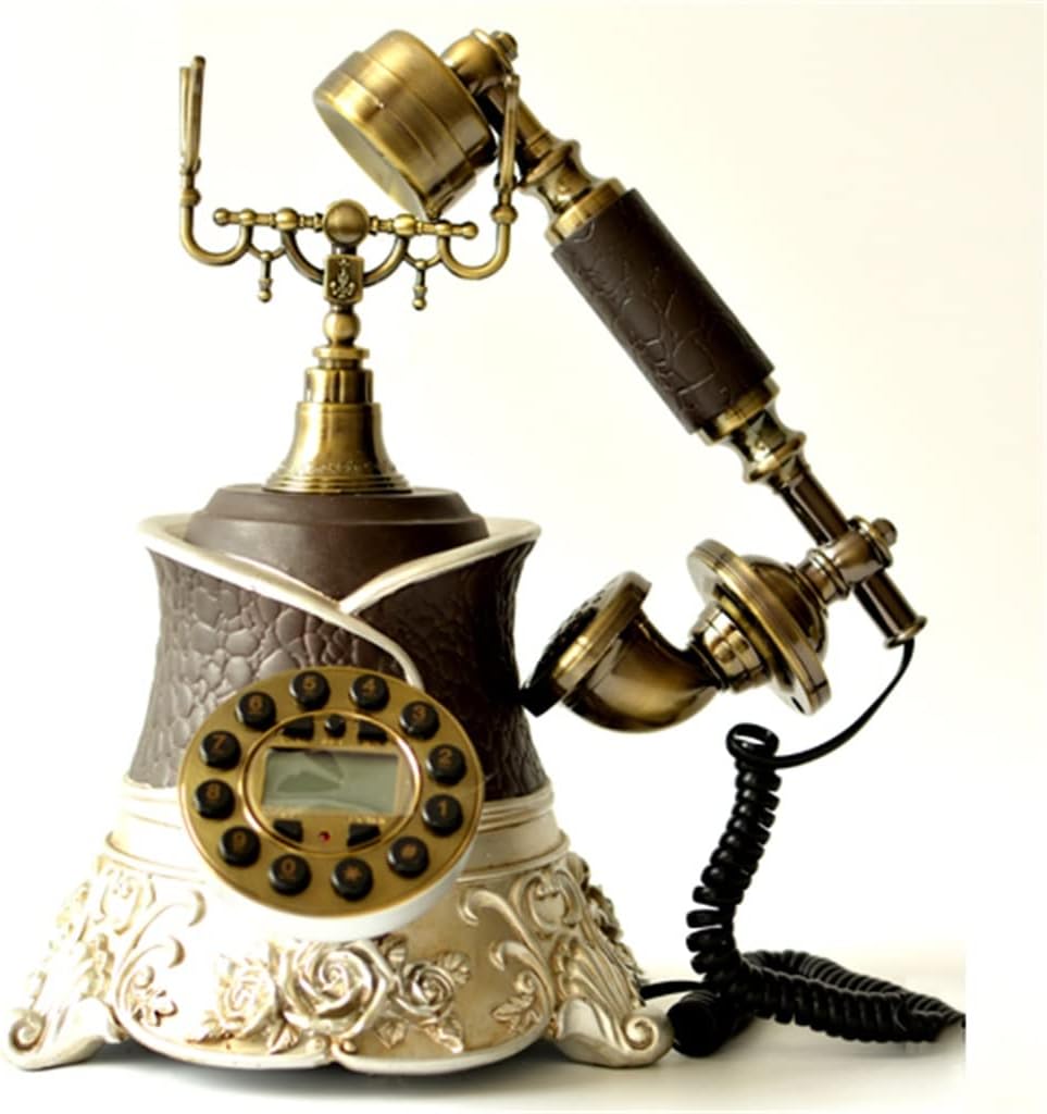 materialHandmade, sturdy and wear-resistantVintage telephone modeling , for your home decoration icing on the cakeThe best choice for giftsSuitable for placing in office, living room, store booth, bedroom bedside, study, hotel, etc[Size] Height 28cm; Width 23cm; Microphone length 25cm[Weight] Weight about 2.1kg[Process] Handcrafted[Material] Resin[Use range] living room, bedroom bedside, study, hotel, etc. [Phone function] caller ID, redial, call log query, etc.Package List:1x Telephone ornamentsPurchase Notes :The telephone bracket has a certain amplitude of shaking, which is designed to avoid the principle of leverage for telephone support. There is no quality problem and it does not affect the use.Function buttons are clear and colorfast.