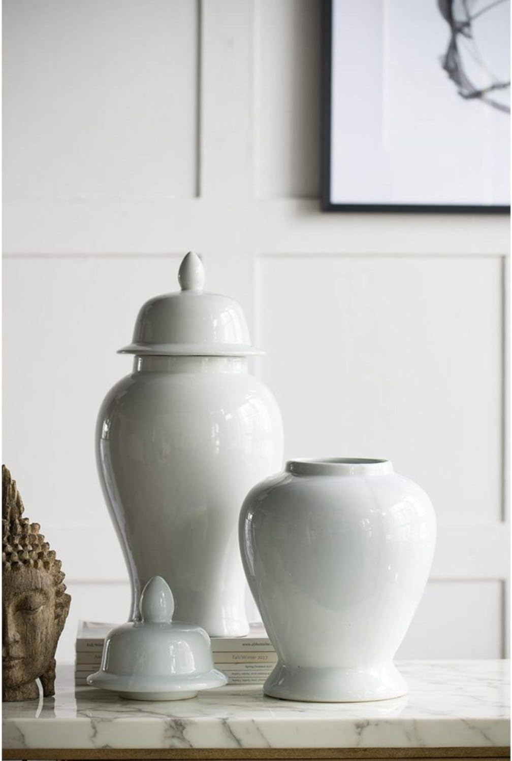 Give your interiors a sophisticated oriental vibe with this stunning ginger jar. This ginger jar is perfect to be used as a centerpiece or decorative accent. Consider clustering this jar with similarly colored vases or mix and match with varying sizes and hues for a look that is custom and unique. Product Features:. Features white Seaford ginger jar. Perfect for any home or office use. Design offers a stylish way to keep your favorite spaces organized and well-coordinated. White ceramic shines with a high gloss finish for a clean and fresh look. Floral arrangement, store kitchen essentials, or fill with decorative branches to a mantle display Dimensions: 20" high x 9.8" diameter. Material(s): ceramic