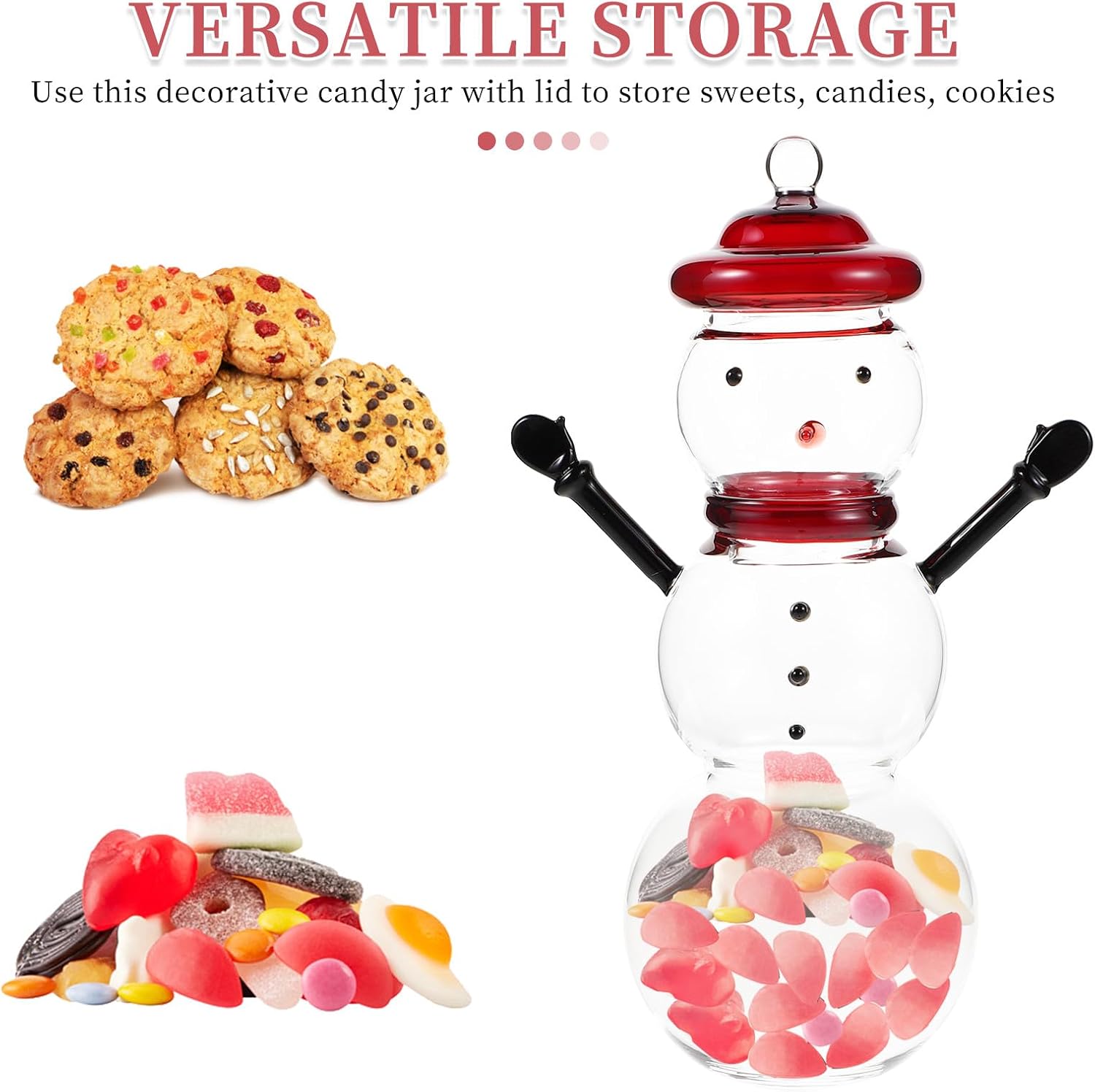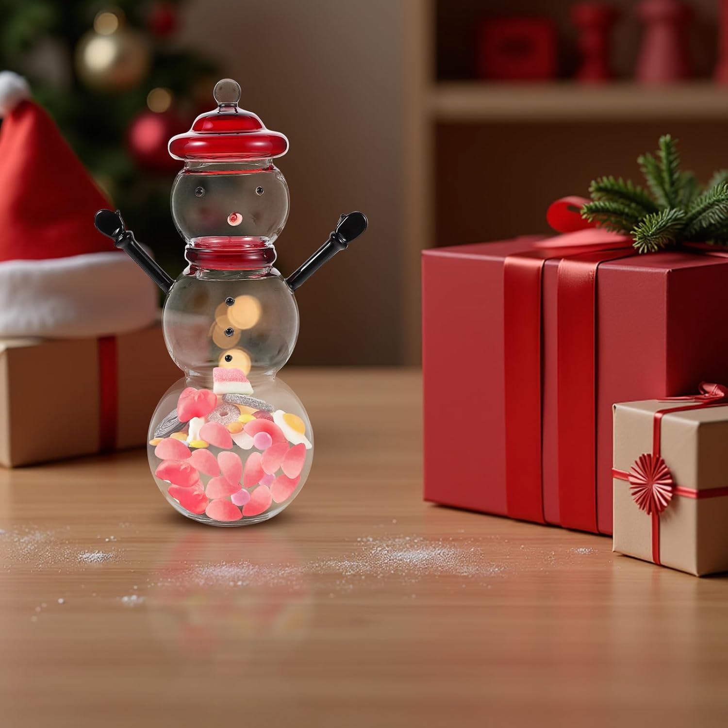 Description Celebrate the holiday season with this decorative snowman candy jar. The glass jar with a lid is perfect for storing candies, cookies, and other treats, while its snowman design adds a festive touch to your home decor. Use it as a candy storage display or a cute sugar container, and enjoy the convenience and charm it brings to your kitchen or living room. This versatile jar is a must-have for any holiday celebration. Features - Color: Transparent -Material:Glass - Size: 23.50X9.00X9.00cm/9.24X3.54X3.54in -Whimsical snowman charm: the snowman candy jar with lid brings a playful and festive vibe to your home, perfect for snowman kitchen decor or party decorations -Secure and practical: the candy glass jar features a secure lid, making it ideal for storing sweets, cookies, or as a cute sugar container for your kitchen -Versatile decorative piece: use this glass sweet bowl as a decorative candy can or a snowman glass decor item to enhance your holiday or everyday home decor -Perfect for celebrations: this holiday candy jar is a must-have for parties, serving as a favor candy jar or a decorative candy jar with lid for guests to enjoy -craftsmanship: crafted from stable crystal glass, this candy jar combines functionality with elegance, making it a standout piece in your glass decorative jars collection