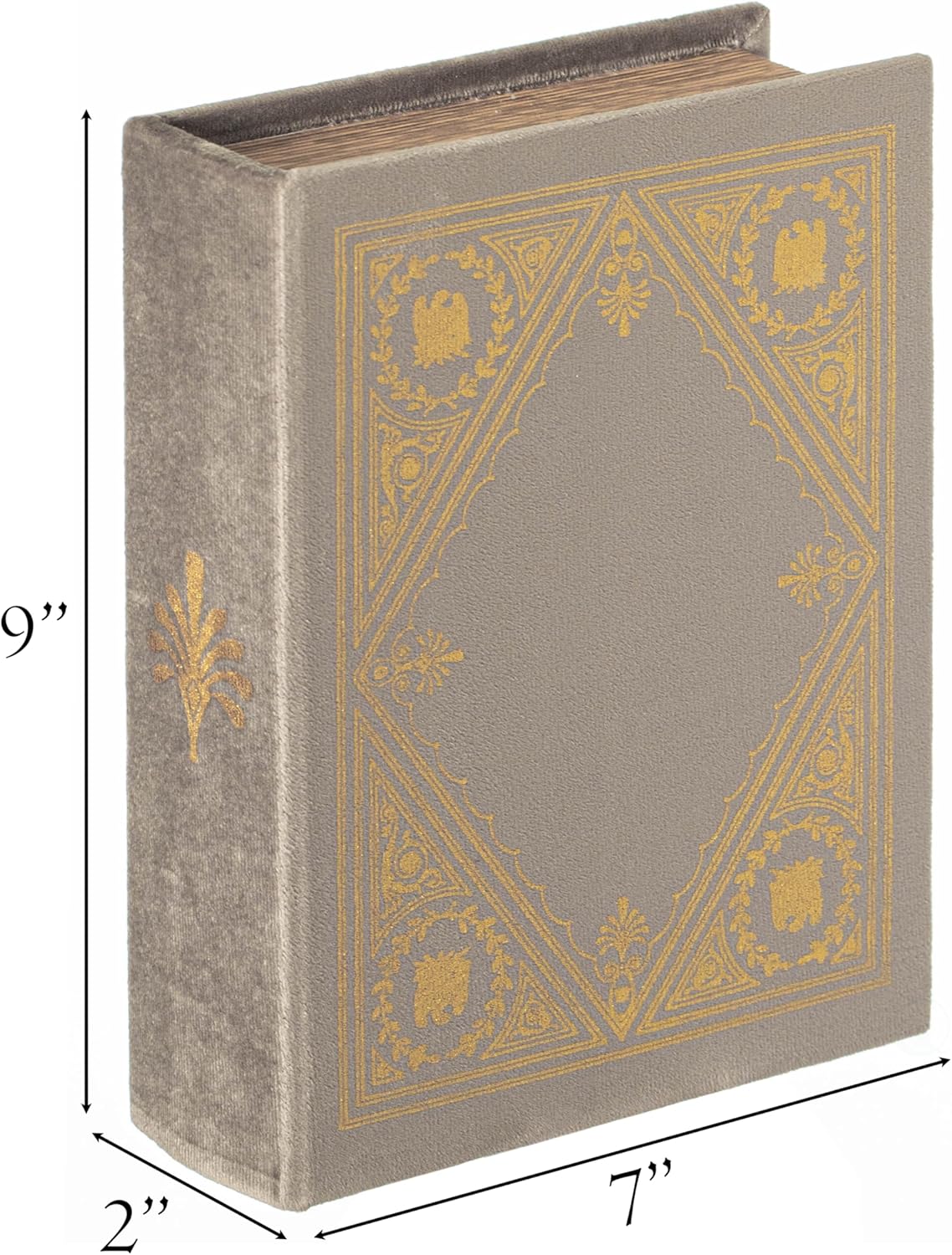 Whether discreetly nestled among other books on your shelf or showcased prominently on an end table, this antique inspired book box seamlessly blends personal storage with vintage elegance. Its luxurious velvet exterior not only adds a touch of classic sophistication but also enhances the tactile experience, evoking the charm of a timeless classic. The spacious interior is designed to keep a wide range of personal items, from treasured keepsakes to valuable jewelry, securely out of sight. This set of 4 decorative book design wooden boxes is a versatile addition to your farmhouse decor, perfect for both functional container and artistic coffee table decor. Each box serves as a stylish storage solution, ideal for organizing jewelry, keepsakes, or small personal artifacts while maintaining a discreet profile. The antique-inspired design makes them an attractive feature on any bookshelf, farmhouse table, or end table. Crafted with meticulous attention to detail by experts in the global handicraft market, these boxes represent the pinnacle of design and craftsmanship. They are not just decorative accents but also embody the best in functionality and style, offering a sophisticated solution for keeping your most cherished items safe and organized. Whether used as elegant faux books for your bookshelf or as standalone decorative pieces, these boxes add a touch of vintage charm and practical utility to any room.