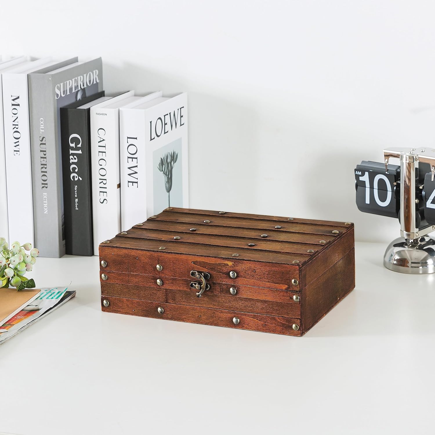 Elevate your storage solutions with the Soul & Lane wooden storage box, a perfect blend of functionality and style. Crafted from high-quality materials, this wooden box with a hinged lid adds a sophisticated touch to any setting. Whether organizing computer cables on an office shelf or keeping mail neatly arranged on an entrance table, this storage box enhances your space with elegance and order. More than just a spot for storing documents, the Soul & Lane wooden box can transform the ambiance of your office. The lockable feature makes it ideal for securing recipe cards, sewing supplies, or puzzle pieces. With its sophisticated striped pattern and solid black lid, this decorative box serves as a stylish statement piece. Slim yet roomy, this trunk is perfect for placement on desk shelves or within wall units, making it essential for organizing your work or home office. The box is a straightforward solution to reduce clutter in your living room or office. When not in use, it can be stored to save space, offering a smart, tidy, and stylish storage solution. Furthermore, this chest doubles as a charming decor item. Ideal for holding craft supplies or treasured keepsakes such as photos, letters, and family heirlooms, it complements nursery or bedroom decor beautifully. Use it as a memory chest to preserve cherished mementos, adding a versatile and elegant touch to your home.