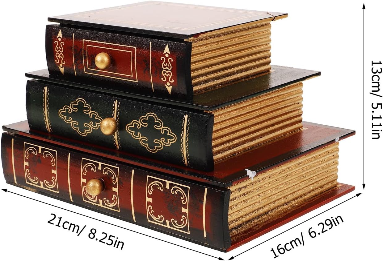 Package Include 1 x book shaped box Characteristics -Size:21.00X16.00X13.00cm/8.25X6.29X5.11in -Product Info:Fake book storage box -Color:Multi -Material:Wood -Not only add vintage vibe appeal to your home decor, but also bring warmth and sweet to your life false book storage container. -The faux book box can decorate any occasions, can it with book jewelry boxes. -Wide range of application, suitable for side table decoration, coffee table decoration or as photo props, even a storage box book model decoration. -This decorative book box brings a sense of fashion and visual interest to your space fake book storage. -The false book model decoration comes with the wood material, not easy to deform or break.Goods Descriptionbook shaped storage organizer Made with fine workmanship and vintage style appearance, ensure their popularity.fake book storage This decorative Faux Book Box is useful and decorative.decorative book boxes It can be used as office and shelf decorative model, also can be used as a to others