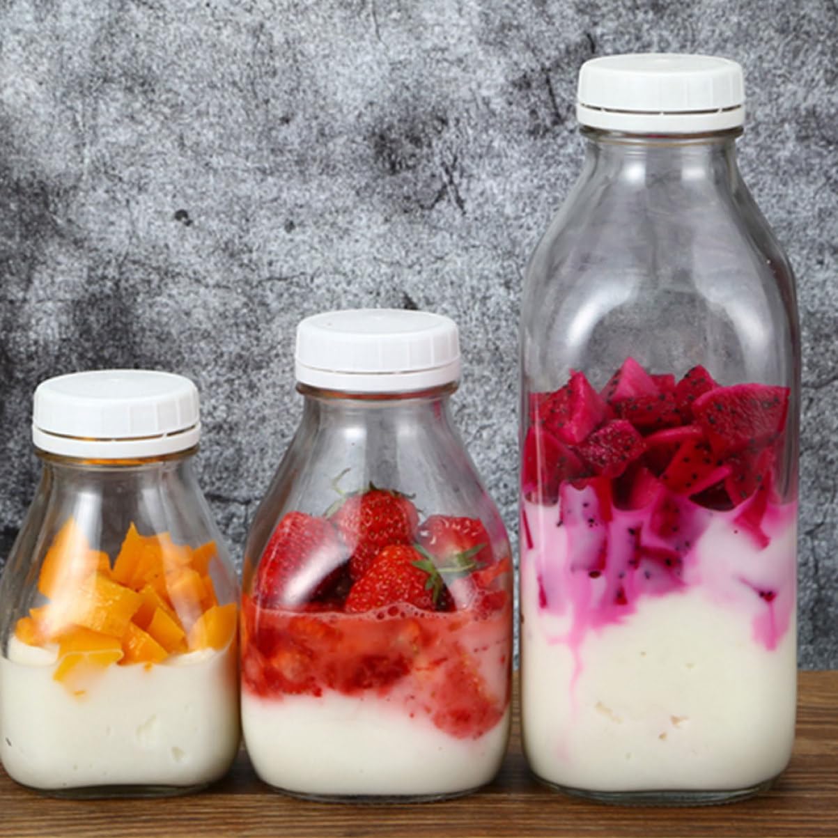 Package Include 2 x Glass Bottles Characteristics -Material: glass Milk Bottle -Size (1000ml): 22.20X8.40X8.40cm/8.72X3.30X3.30in Coffee Bottle -Color: As shown milk jug decorative -Note: The bottle style of this product is random Bottle for Beverage. - Applicable to classrooms, offices, parties and other indoor places and all outdoor places Milk Holders. - The material is and healthy, strong and decorative beverage bottles. - The cover design allows you to carry it wherever you go large. - Unified color, simple design, beautiful and generous Fresh-keeping Bottle. - Glass material, easy to clean, can be used repeatedly Beverage Container.Goods Informationwater bottle This is a milk bottle made of glass.jars with lids You can use it to hold drinks like milk or yogurt.clear container with lid Its lid design makes the tightly fit the bottle, will not cause the liquid leakage, make it convenient for you to use.Bottle for Beverage Transparent bottle body allows you to easily see the volume of the liquid, it’s very convenient