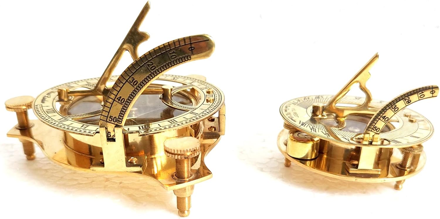 Ganga Nautical 2 Piece Golden Polish Size 3 Inch 4 Inch Round Sundial Compass