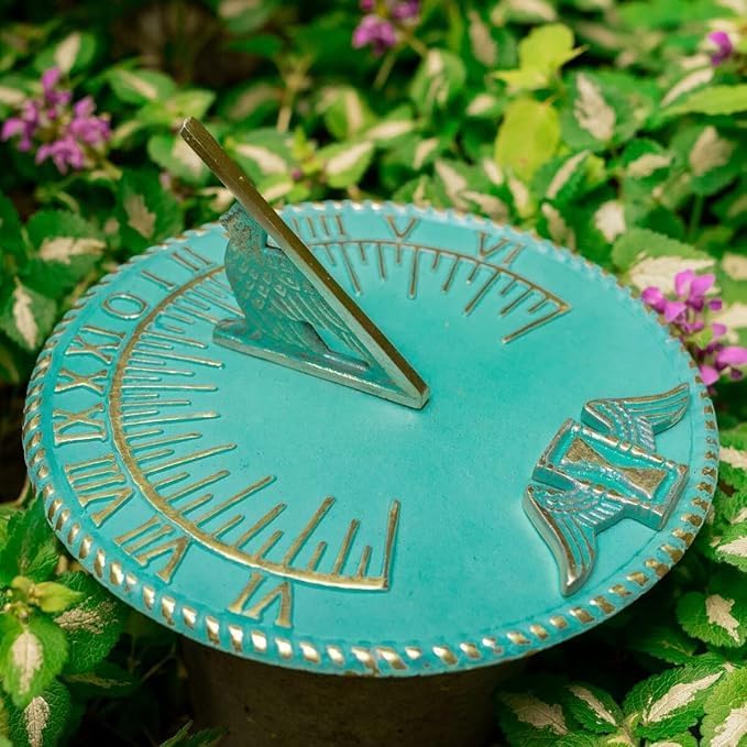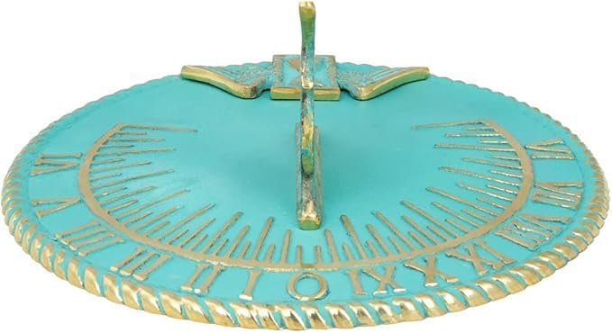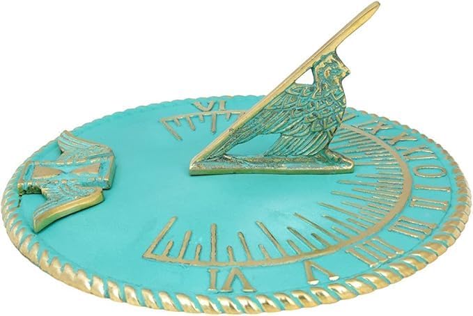Brass Sundial 10 " Turquoise Blue Vintage Sundial for Yard Decorations Outdoor Garden Art Gift Sundials Christmas Gift , Birthday Gift , Anniversry Sundial , Couple Gift Idea Dimension- Total diameter of the garden sundial =10 inches, height = 5 inches. This pretty antique piece of garden outdoor sun clock is a perfect present you can gift to your friends, family or someone who is fond of nautical pieces. Heavy duty round sundials can be placed anywhere - your patio, yard or in lawn. Placing this horologe timepiece simply in your garden area creates an instant great first impression. It has got a unique finish and a detailed Phoenix bird shaped Gnomon for showing solar shadow time. Can be easily mounted over any flush surface. Install these ancient sundials in your place and have some fun in your garden. We offer you great value products for your money and a perfect way to spend wisely. AT MART