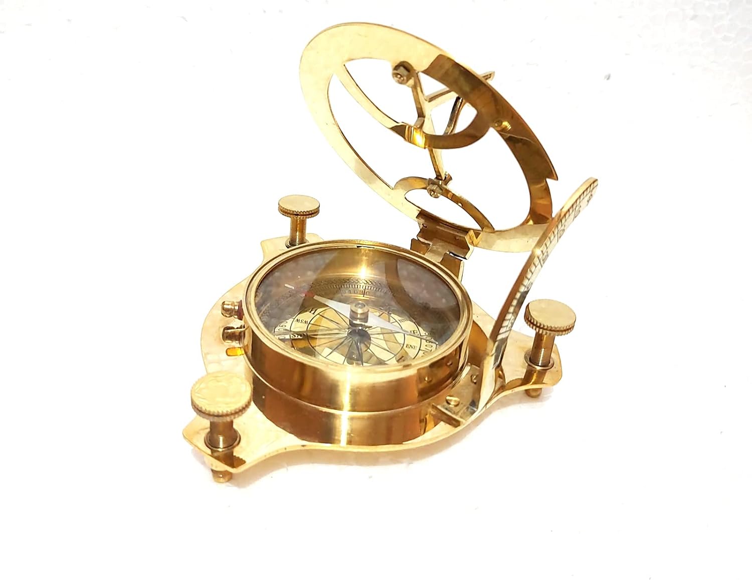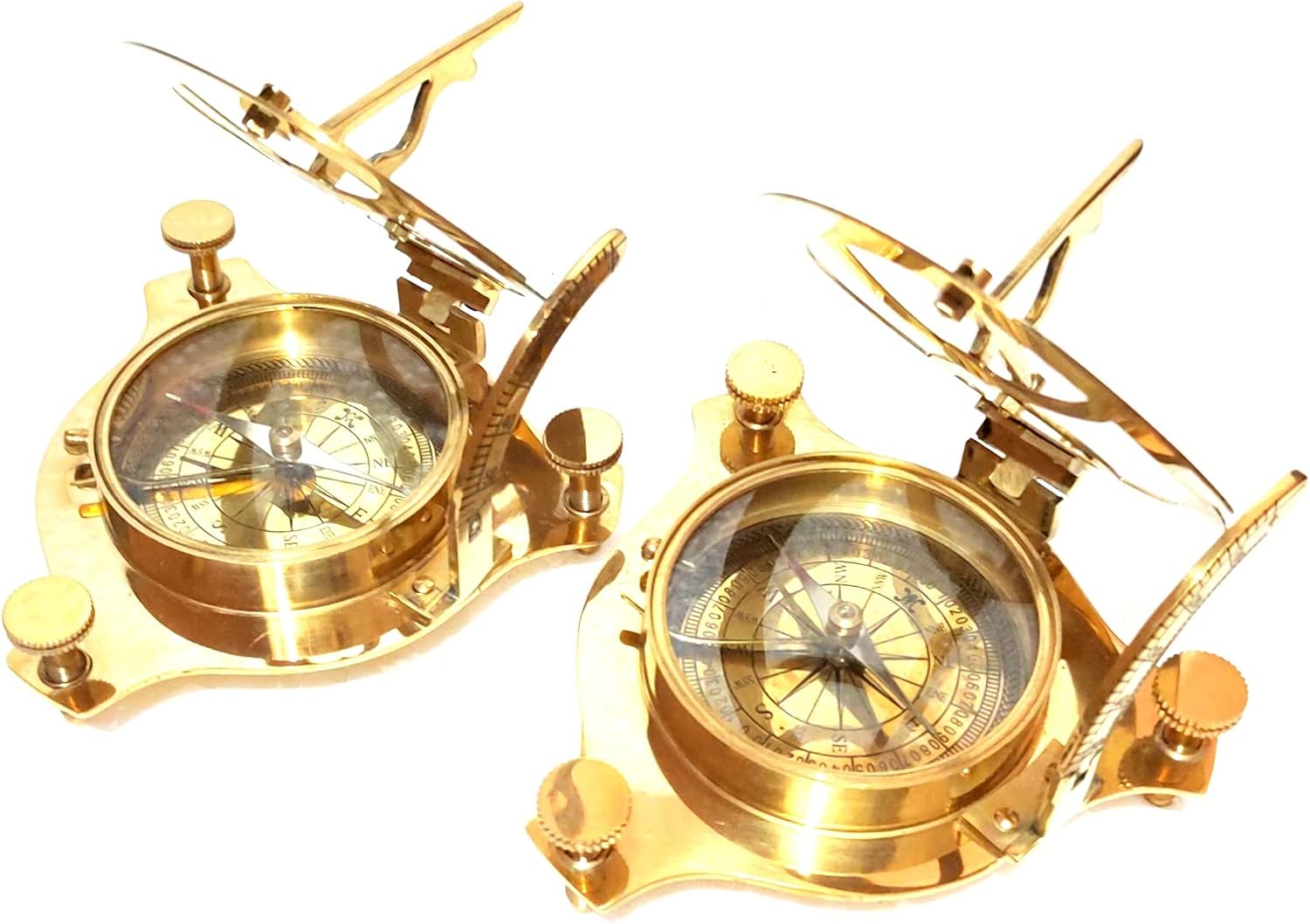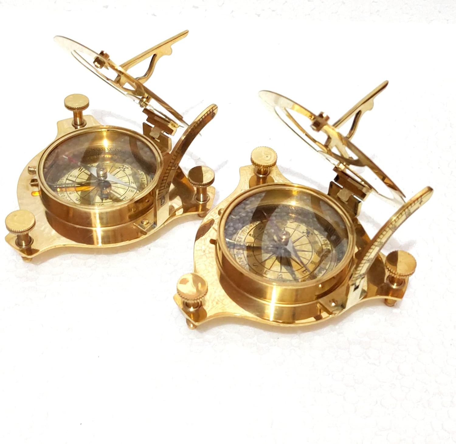 2 Pic Brass Sundial Compass Nautical Working Navy Ship Magnetic Compass (Golden) 4''inch Materials Solid brass and Glass