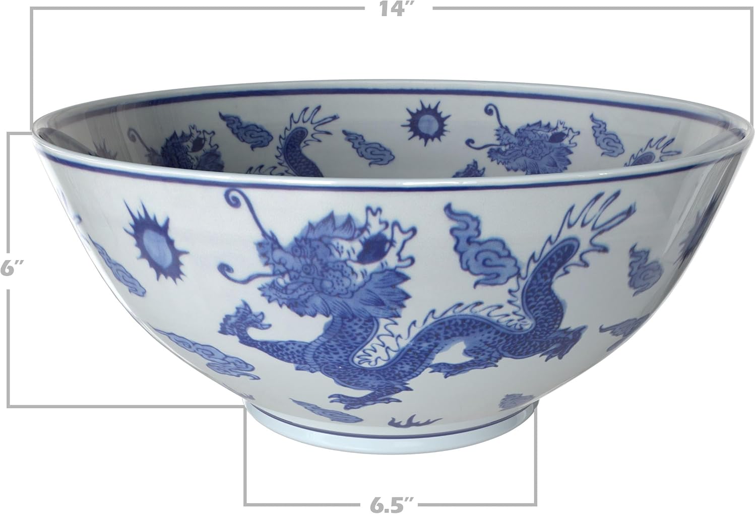 A large oriental fruit bowl, decorated with a Ming blue and white dragon design. Display individually as an Asian style centerpiece or in matched pairs. From one of the web's most comprehensive selections of fine quality oriental porcelains in Japanese, Chinese, and Korean designs.