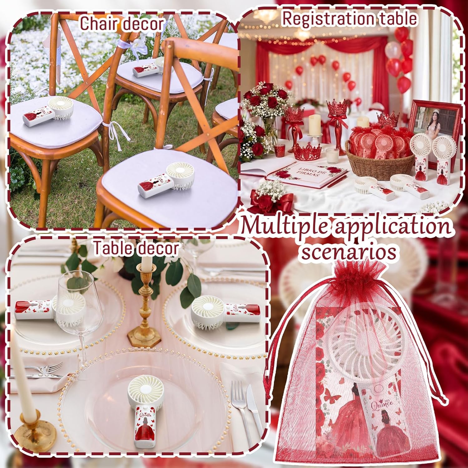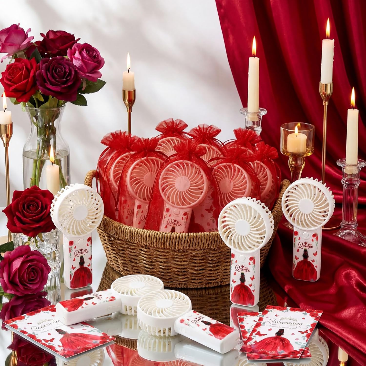 Features: Thoughtful Gifts: Perfect for parents planning a memorable 15 años celebration, this quinceanera favors bulk set blends beauty, comfort, and gratitude into one cohesive gifting solution. Helping you honor your daughter and warmly thank every guest who shares in her special day. Elegant Color Theme with Delicate Crown Accents: These fans beautifully symbolize youth, grace, and the transition into young womanhood. They complement a wide range of quinceanera decorations and party styles, enhancing both ceremony and reception décor with coordinated charm. Specifications: Material: ABS, paper Color: red Size: Handheld Fan: 2.36 x 1.46 x 4.92 inch Thank You Cards: 2.36 x 4.72 inch Organza Bags: 4.33 x 6.30 inch Package includes: 25 x Quinceanera Handheld Fan 25 x Thank You Cards 25 x Organza Bags Notes: Manual measurement, please allow slight errors on size. The color may exist a slight difference due to different screen displays