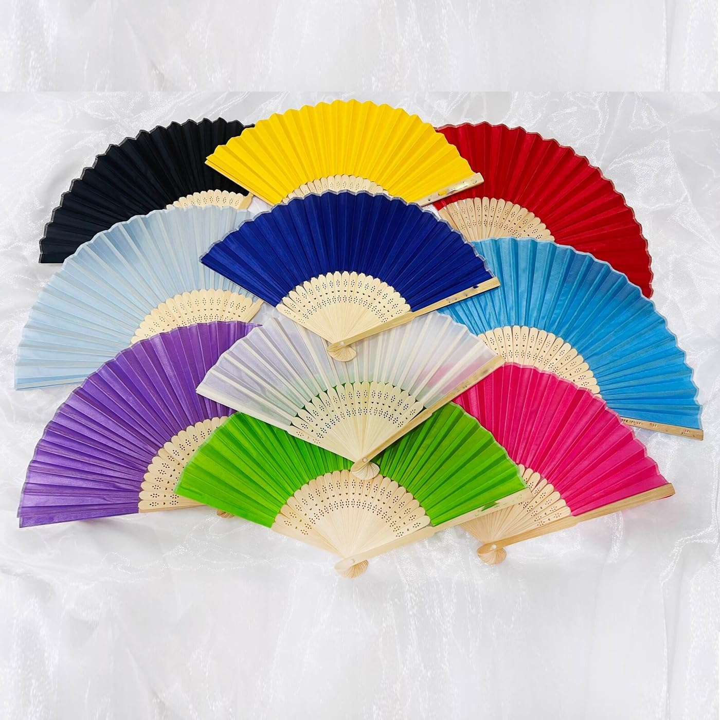 Material Size: Length 20.5cm, Width 33cm Packaging: 20pcs/30pcs/40pcs/50pcs/60pcs/100pcs in white organza bag. We can also engrave names and dates MATERIAL: WOOD These fans are made from wood and woven fabric, this hardwood has a natural scent and is ideal for making fans. Colour: Natural wood colour. Fans are made from natural wood and usually have colour variations. It is normal for the same fan to show different colours. Good wood aroma. Wooden folding fans have a light, pleasant fragrance that is not too strong for sensitive noses. Practical and artistic: This is a handicraft with a vintage character. This vintage style fan not only represents elegant classical beauty, but also brings you coolness in summer and decorates your home and office. These fans will bring you a fresh and elegant feeling. WIDE APPLICATION: Wooden folding fans are suitable for home, office, teahouse and stage, also can be used as gifts for your family or friends, also can be used as party favours in weddings, birthdays, baby christening, bridal shower, graduation or any outdoor or indoor events, add chic atmosphere to the party, your guests will surely love it.