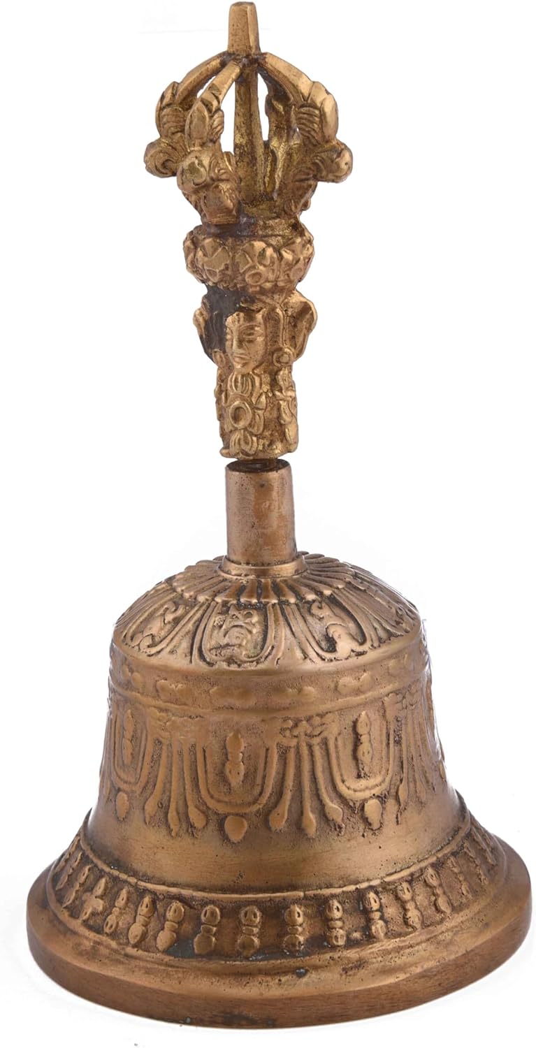 * Brand :- Blessfull Healing * Beautiful Bell Brass Copper Buddhist Tibetan Bell with The Dorje Vajra Crafted on The Bell Small Yellow Brown (11 x 5.3 cm)