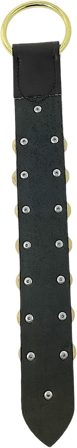 Black Sleigh Bell Door HangerMade in Lancaster, PA USAMade from leather with brass plated ring and bellLeather strap is approximately 16 inches long (41cm)Ring is approximately 3 inches in diameterIncludes original manufacturers packaging – no box