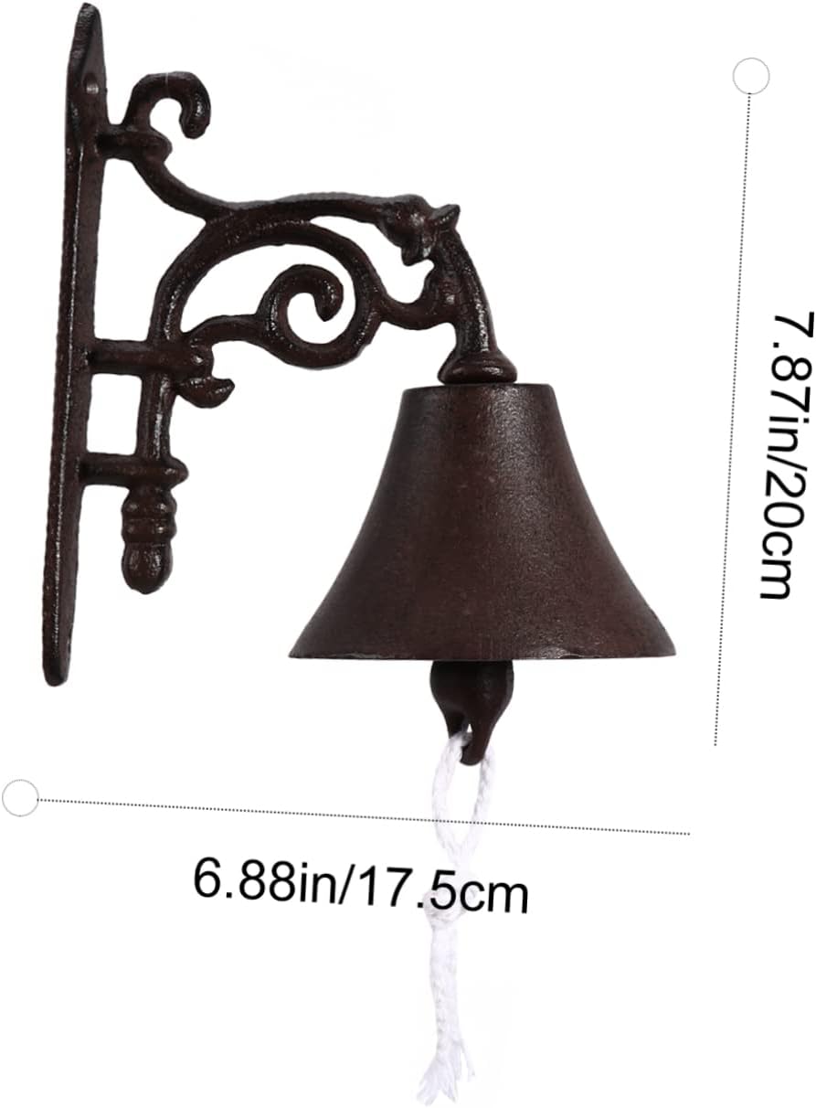 Package List 1 set x doorbell Characteristics -Size: 20.00X17.50X10.50cm/7.86X6.88X4.13in -Material: Iron -Color:Brown - Suitable for variety of occasions, not only for home, but also for farm, garden, yard, etc - Bell bracket mount works well with indoor or outdoor walls, door, fence or post - It can be used as doorbell, dinner bell, or simple decorative bell - Perfect fors a wonderful gift for your friend, family, lover and partner - Rustic style doorbell is made of iron which makes crisp soundGoods InformationThis rustic style hanging doorbell is crafted from cast iron, presenting a visually appealing home décorccent. Its clear sound adds function to form, serving as doorbell or dinner bell while enhancing your porch or garden with vintage charm. The unique design brings life to plain walls, offering an eye-catching, whimsical touch that complements farmhouse and rustic settings. Easy to install with minimal assembly, this piece withstands outdoor conditions, ensuring lasting beauty and practicality. Embrace the nostalgic appeal and make your home welcoming with this decorative cast iron bell that blends artistry with everyday utility From DECOMELODY was created to bring timeless rustic charm into everyday living spaces. Inspired by warmth of vintage farmhouse aesthetics, our products blend craftsmanship with unique design to enrich homes with personality. Each item invites users to experience comfort and nostalgia, turning ordinary moments into cherished memories. Embrace rustic elegance with DECOMELODY, where tradition meets