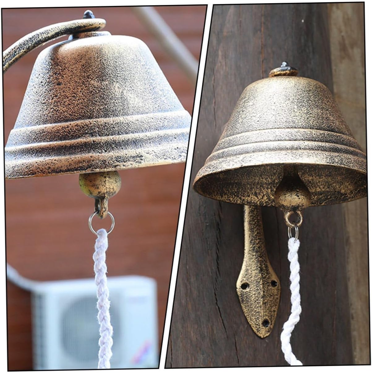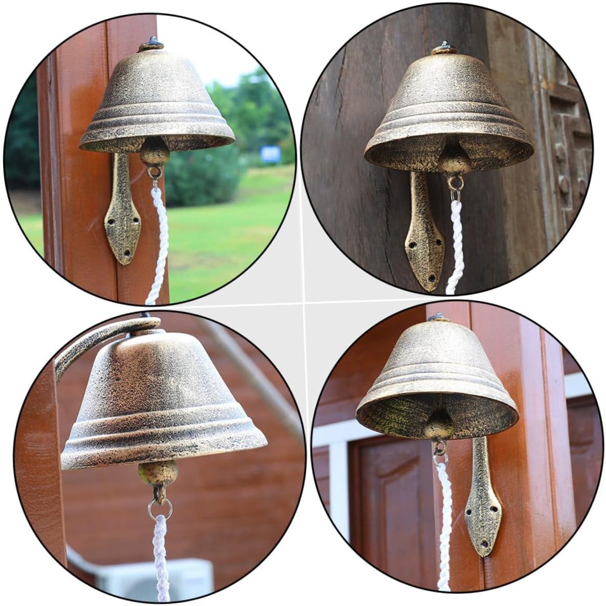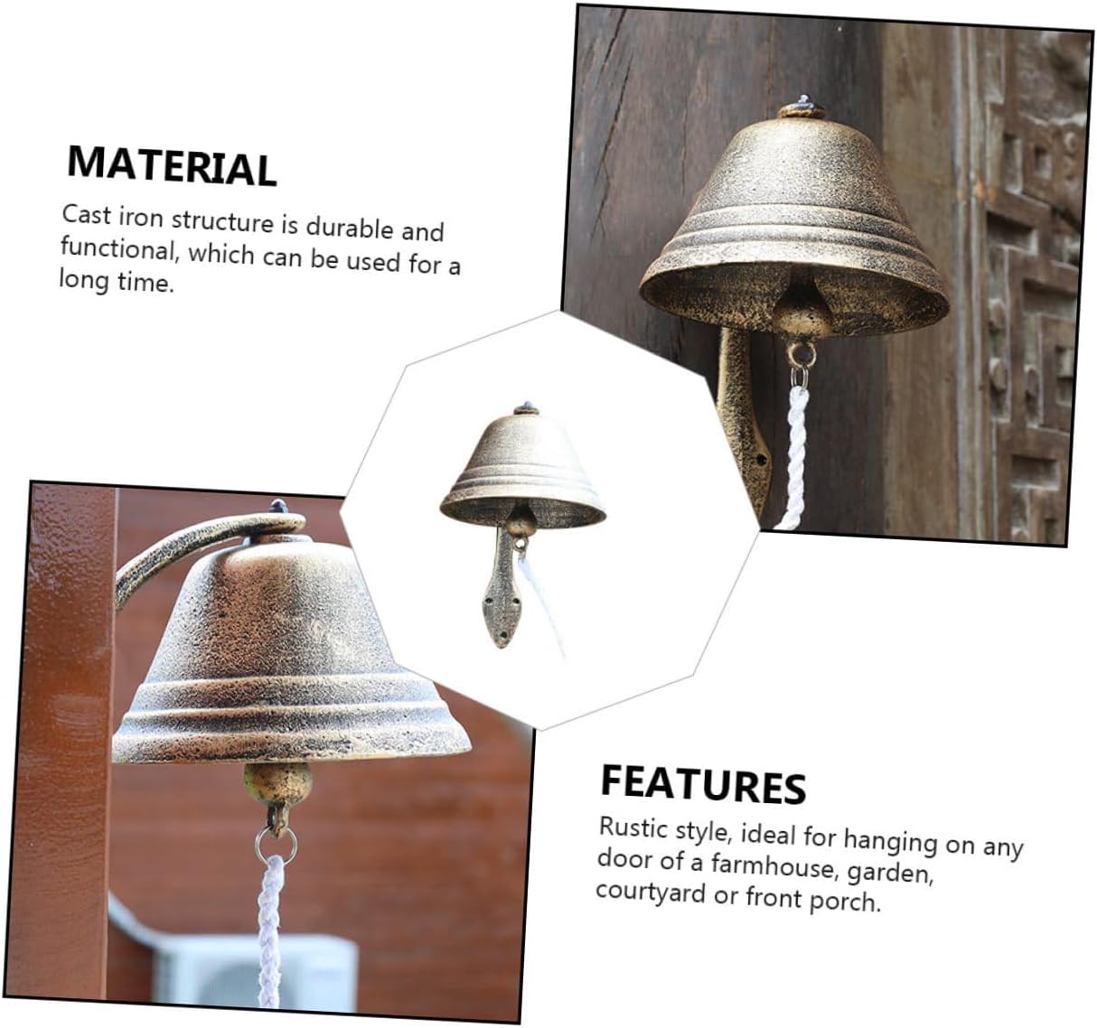 Package Include 1 x Cast Iron Doorbell Features -Product Info:Retro doorbell decoration - Color: Assorted Color. - Material: Cast iron, cotton rope. - Size: Approx. 24.00X17.50X17.50cm/9.43X6.88X6.88in. - Make the empty and boring walls become vivid and the temperament of your entire space. Antique Style Doorbell - Cast iron doorbell, beautiful appearance, clear texture, solid and Iron Wall Bell. - Crisp ringtone makes it become a perfect dinner bell or welcome bell Manually Shaking Doorbell. - It features a vintage and retro style, full of rustic style and atmosphere Wind Bell Hanging Decor. - Eye-catching and life-like. The gift for your friends who like to decorate their house Antique Bell.Goods InformationRustic Doorbell Its unique design can not only decorate your house but also add a touch of whimsy and unexpected style to your doorway.Cast Iron Doorbell Do you want to decorate your courtyard or garden? If so, our cast iron doorbell is carefully prepared for you