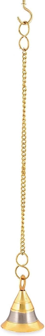 Add a touch of spiritual elegance to your home temple or puja room with this exquisite wall-hanging bell. Crafted with meticulous attention to detail, this decorative bell features a stunning combination of brass with silver and gold finish, creating a harmonious blend of traditional aesthetics and contemporary appeal. The bell comes complete with a sturdy chain and convenient hanging hook for easy installation. Its classic design incorporates traditional elements that make it a perfect addition to your sacred space. The durable metal construction ensures long-lasting beauty, while the melodious sound adds to the serene atmosphere during prayers and meditation. The thoughtfully designed chain length allows for optimal placement, whether mounted on a wall or suspended from the ceiling. This decorative piece serves both as a functional bell and an ornamental element that enhances the spiritual ambiance of your worship area. Perfect for daily use and special occasions, this bell combines functionality with artistic craftsmanship to create a meaningful addition to your home temple decor.
