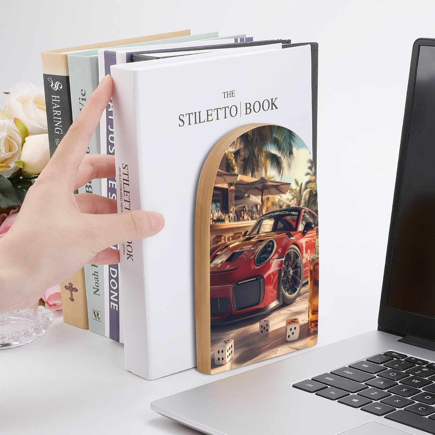 Custom Bookend Wood Book Ends for Shelves Cute Book Shelf Holder Home Decorative,the book end protect your bookshelf or furniture from scratching when you move the bookends