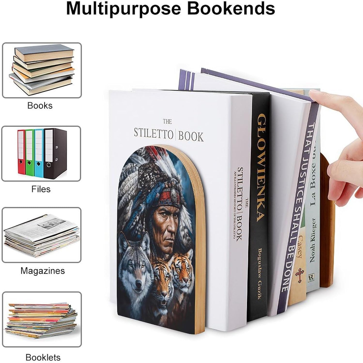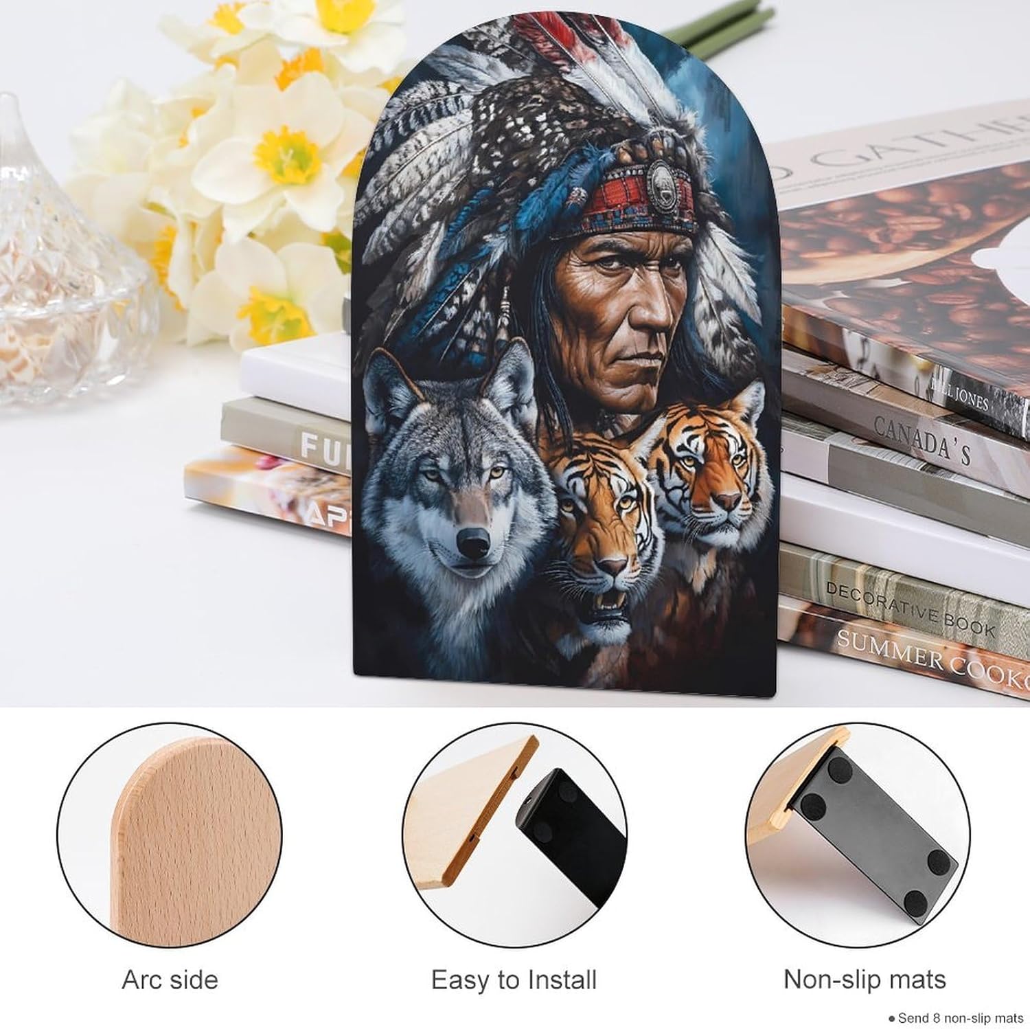 Custom Bookend Wood Book Ends for Shelves Cute Book Shelf Holder Home Decorative,the book end protect your bookshelf or furniture from scratching when you move the bookends