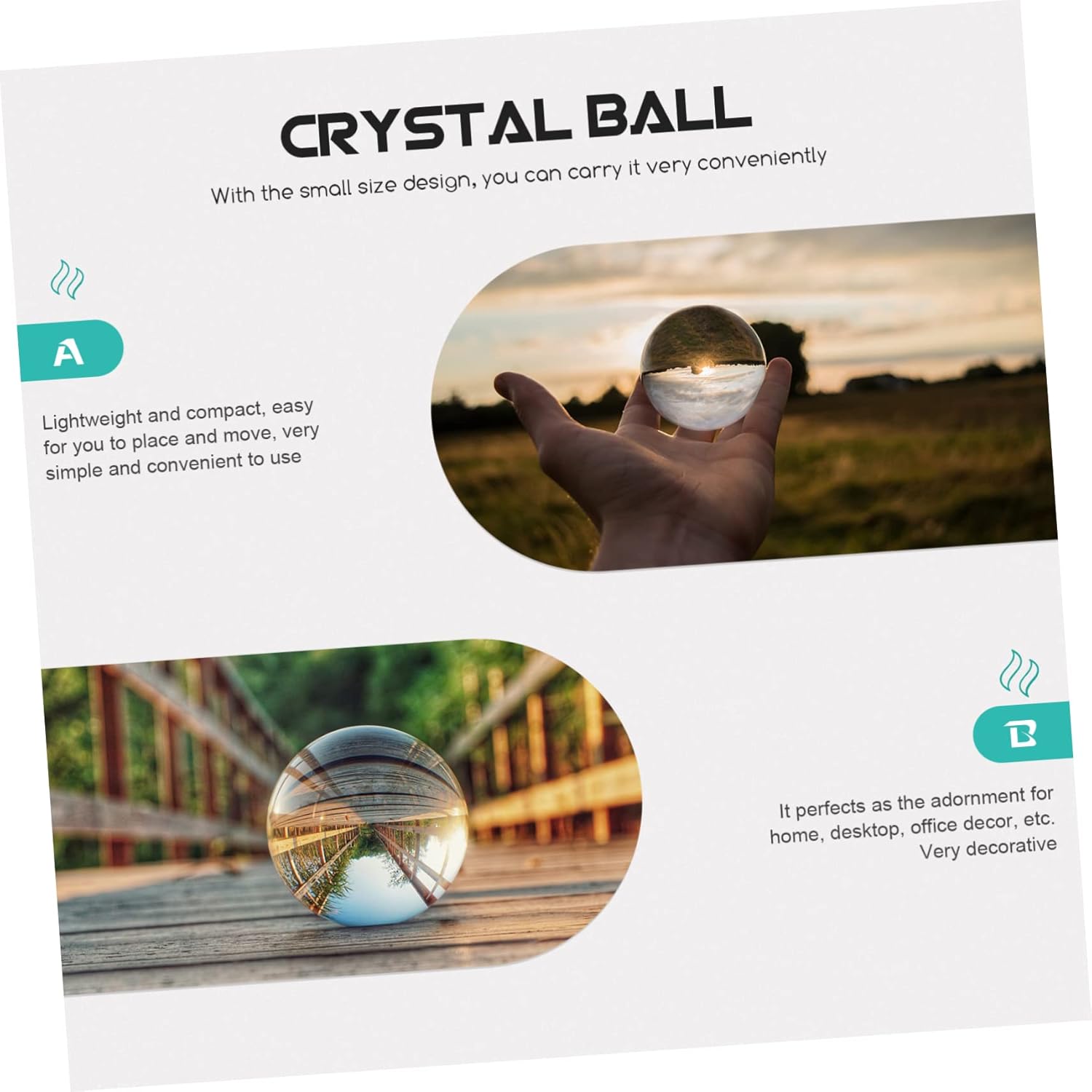 Package List 1 x adornment Characteristics - Material: White crystal Decorative Crystal Ball. - Size: 9.00X9.00X9.00cm/3.54X3.54X3.54inch Crystal Craft Decor. - A present selection for your close friends or dear family members, stylish and Chic Crystal Ball Adornment. - Can be used to decorate your office desk, porch, study room and some other places Home Decor Supply. - Selected white crystal material, which can be safely and durably used for a long time Household Adornment. - It can stand steadily on a smooth desktop, decorative effect. It will meet your needs! Crystal-ball - With excellent craftsmanship, stylish appearance, as a decoration at home or store Crystal Ball.Goods DescriptionCarved Crystal Ball want a fashionable and beautiful crystal ball decoration? If you want, you can .Desktop Ornament It will meet your needs!.Crystal Ball It can be placed shops, offices, homes or other places.Chic Crystal Ball Adornment This is a beautiful and stylish crystal ball adornment.Home Decor Supply Delicate designs make it a great birthday friends.Crystal Ball Adornment It can stand steadily on a smooth desktop, decorative effect