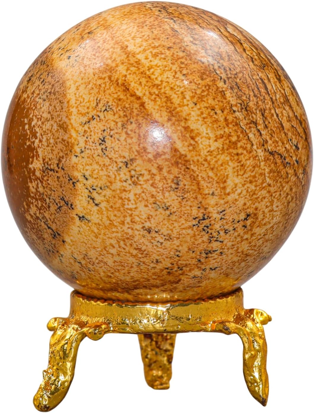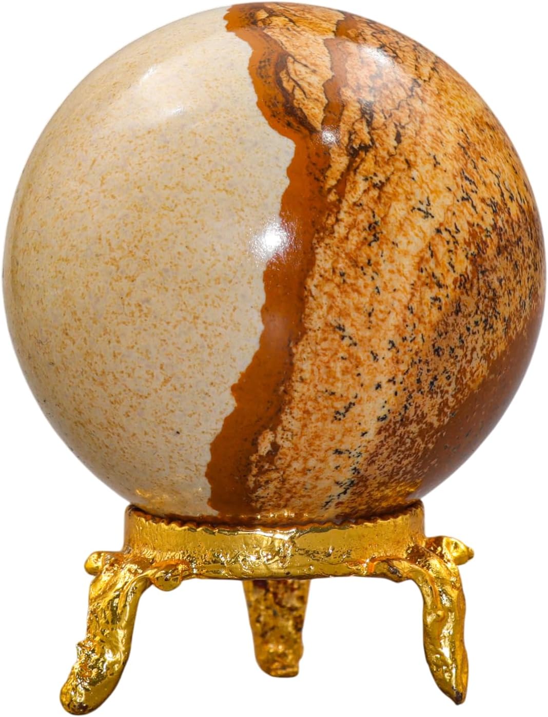 Discover tranquility with this exquisite 50mm Aragonite Crystal Ball Sphere. Meticulously polished to achieve a smooth, lustrous finish, this natural stone sphere serves as both a striking decorative piece and a powerful meditation aid. The warm, earthy tones of aragonite create a captivating display as light dances across its polished surface. Perfect for crystal healing practices, meditation sessions, or as an elegant addition to your spiritual decor collection. The substantial 50mm (approximately 2-inch) diameter provides a comfortable size for handling during energy work while making an impressive display piece. Whether placed on your altar, meditation space, or as a focal point in your home, this aragonite sphere brings a touch of natural beauty and calming energy to any setting. Each sphere showcases unique patterns and variations inherent to natural aragonite, making every piece one of a kind.