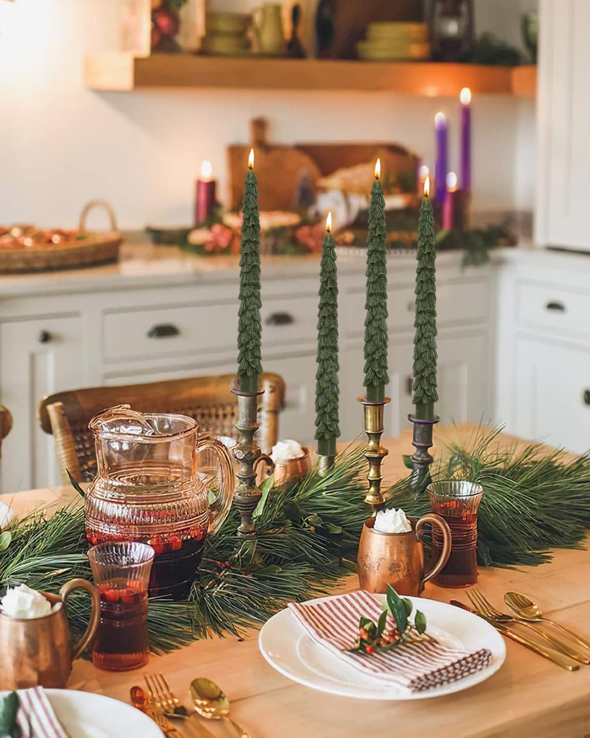 Christmas tree Taper Candles-Green Candles-Unscented Candle Sticks and Dripless,Christmas decorations