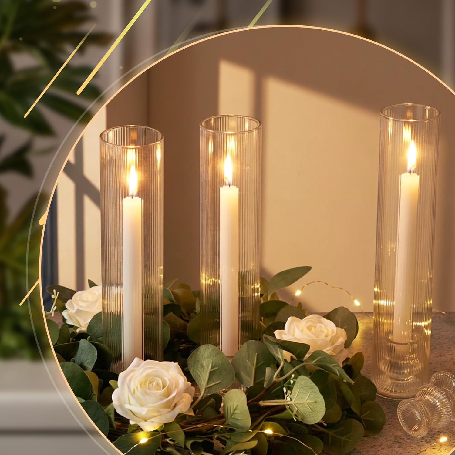 Features: The taper candlestick bulk are ideal for decorating windowsills and tables for weddings, Valentine's Day, Christmas, Thanksgiving, and sweet celebrations. Can create a sweet and warm atmosphere. This glass candlesticks for pillar candles is made of glass. Please handle it with care after receiving the package to avoid breaker. When using it, pay attention to the open flame of the candle and be careful not to get burned. Specifications: Material: glass Color: clear Size: The candleholder is about 2.4 x 11.8 inches/6 x 30 cm The candlestick is about 2.1 x 2.2 inches/5.3 x 5.6 cm Package includes: 24 x Bottomless glass tube cylinder 24 x Transparent taper candlestick Notes: Manual measurement, please allow slight errors on size. The color may exist a slight difference due to different screen displays. Open flame may pose a risk of burns, please keep away from children Burning may produce a pungent smell. Open flame may pose a risk of burns, please keep away from children
