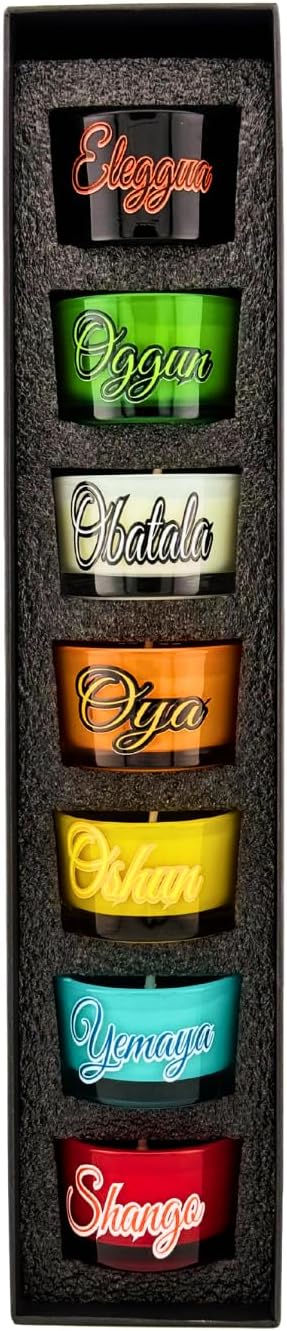 Set de Velas de las Siete Potencias Africanas – Fuerza, Protección y Caminos Abiertos 7 velas | Cera de soya premium | Esencias florales espirituales Conectá con la energía completa de los siete grandes orishas del panteón yoruba a través de este set de 7 velas artesanales, cada una dedicada a una potencia espiritual: Eleguá abre los caminos, Oshún brinda amor y dulzura, Yemayá protege con su poder maternal, Shangó representa la justicia y la fuerza, Obatalá ofrece paz y sabiduría, Ogún destraba obstáculos, y Oyá limpia, transforma y renueva. Cada vela está cuidadosamente elaborada para trabajar con la energía específica de cada orisha, permitiendo realizar rituales personalizados, limpiezas energéticas o peticiones poderosas. 🕯️ Contenido: Set de 7 velas de 8 oz, con cera de soya 100% natural – limpias, veganas y de larga duración 🌸 Aromas: Esencias florales espirituales, suaves y elevadoras 🌈 Colores: Cada vela representa con sus colores y decoración la fuerza de su orisha correspondiente ✨ Decoración: Detalles simbólicos y espirituales únicos en cada vela 🌿 Uso recomendado: Rituales de conexión, protección total, ofrendas, peticiones, apertura de caminos y evolución espiritual Vertidas a mano con intención, estas velas forman un altar completo para que la luz de los orishas guíe y proteja cada aspecto de tu vida. Seven African Powers Candle Set – Strength, Protection & Open Roads 7 candles | Premium Soy Wax | Spiritual Floral Essences Connect with the full energy of the seven great orishas of the Yoruba pantheon through this set of 7 handcrafted candles, each one dedicated to a powerful spiritual force: Eleguá opens the roads, Oshún brings love and sweetness, Yemayá protects with her maternal power, Shangó stands for justice and strength, Obatalá offers peace and wisdom, Ogún removes obstacles, and Oyá cleanses, transforms, and renews. Each candle is carefully crafted to work with the specific energy of its orisha, allowing for personalized rituals, spiritual cleansings, or powerful petitions. 🕯️ Content: Set of 7 candles, 8 oz each – made with 100% natural soy wax, clean-burning, vegan, and long-lasting 🌸 Scents: Gentle, uplifting spiritual floral essences 🌈 Colors: Each candle reflects the energy and symbolism of its orisha through its color and decoration ✨ Decoration: Unique spiritual and symbolic details on every candle 🌿 Recommended use: Connection rituals, full protection, offerings, petitions, road opening, and spiritual growth Hand-poured with intention, these candles create a complete altar so the light of the orishas may guide and protect every aspect of your life.