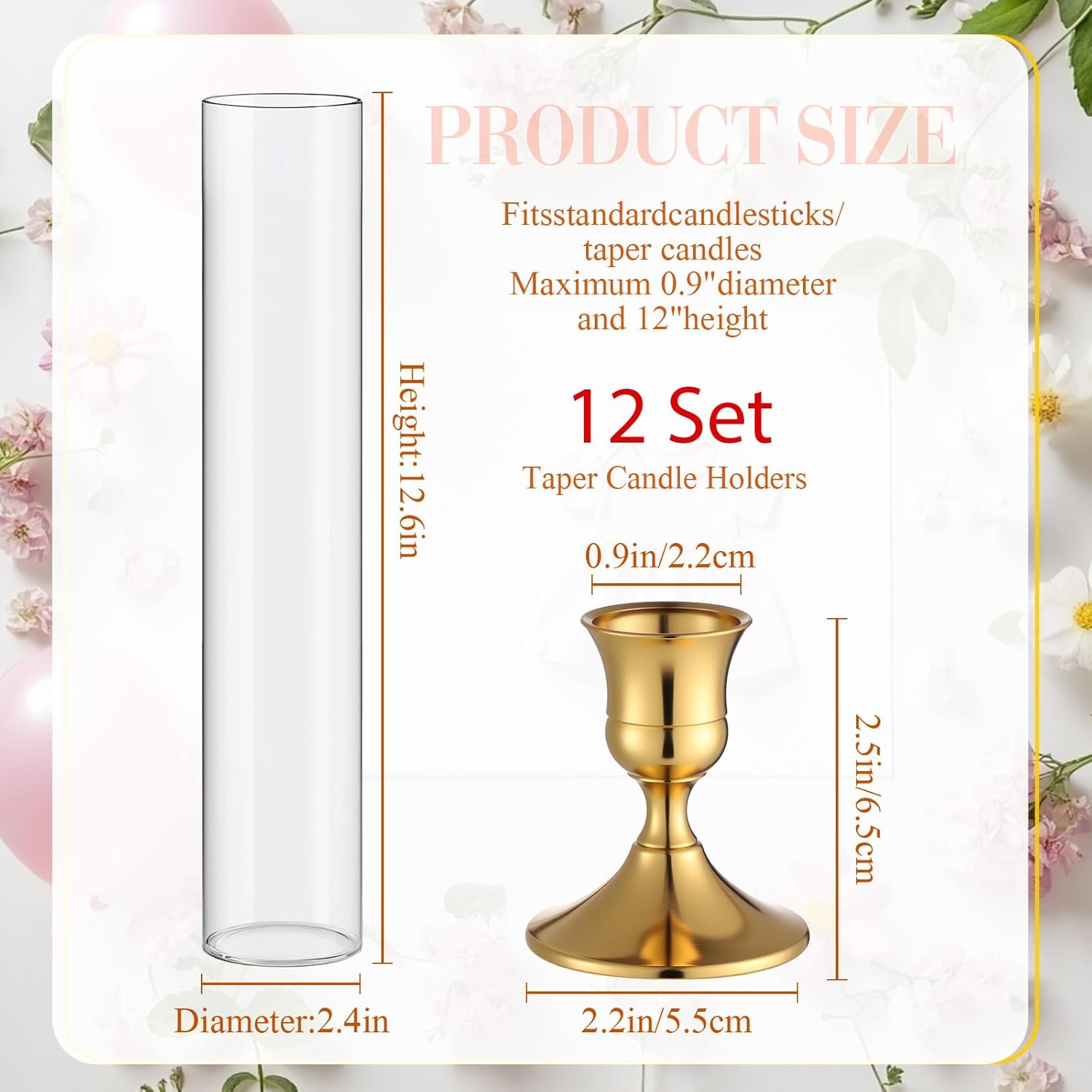 | Included Components | 24 x Bottomless glass tube cylinder, 24 x Gold taper candlestick |
